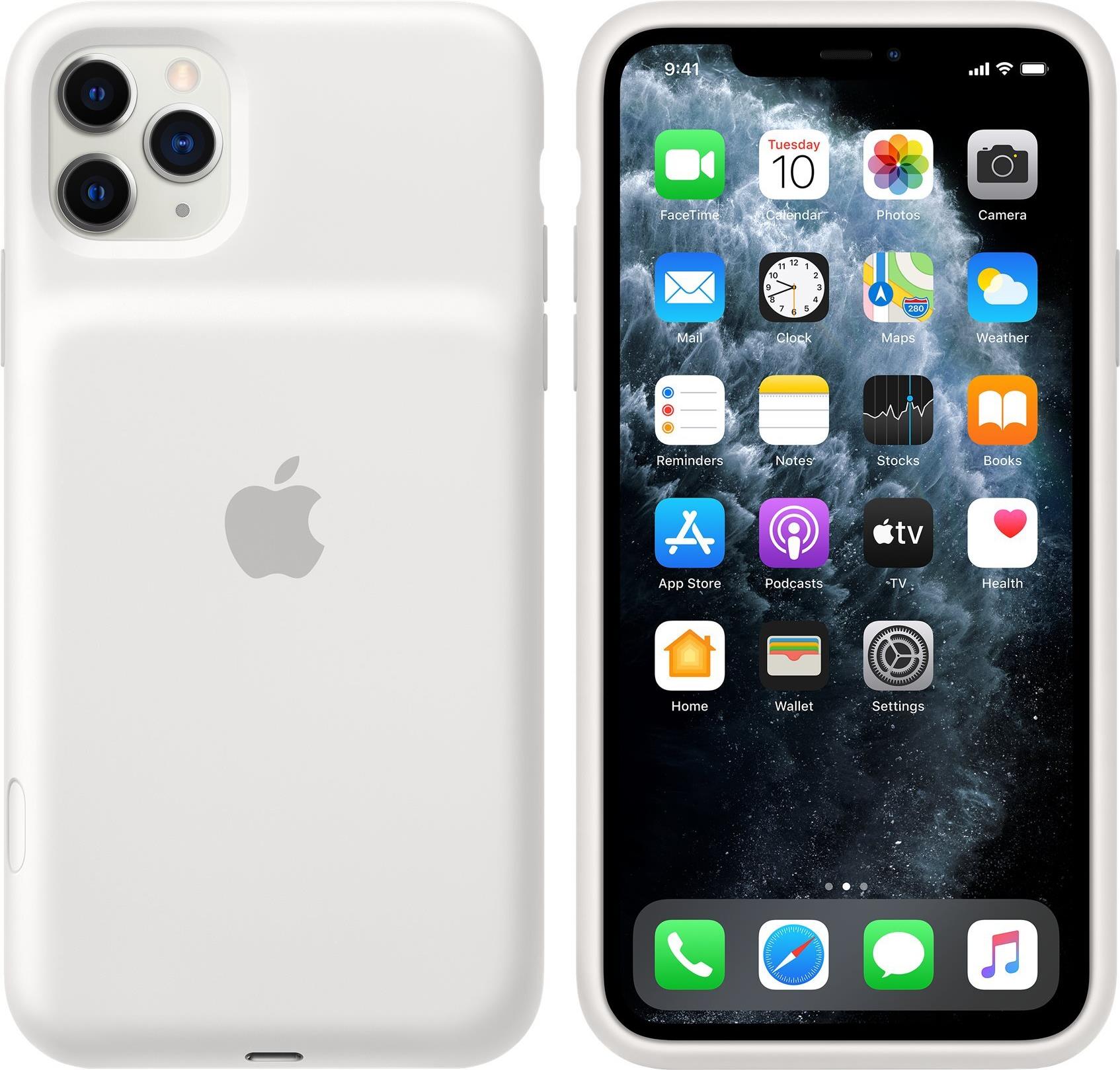 Das für das iPhone 11 Pro Max entwickelte Smart Battery Case sorgt für Schutz und noch längere Batterielaufzeit. Innen schützt ein weiches Futter aus Mikrofaser dein iPhone. Und die glatte, weiche Außenseite aus Silikon fühlt sich gut an und liegt genauso in der Hand. Durch das Design mit einem Scharnier aus weichem Elastomer kannst du das iPhone einfach in das Case schieben und herausnehmen.Das Case kommt mit einer eigenen Kamerataste, um die Kamera App zu starten, egal ob das iPhone gesperrt ist oder nicht. Wenn du die Taste kurz drückst, nimmst du ein Foto auf, wenn du sie länger drückst, ein QuickTake Video. Das funktioniert auch für Selfies.Das Smart Battery Case ist auch kompatibel mit Qi zertifizierten Ladegeräten. Du kannst dein iPhone und Battery Case gleichzeitig aufladen. Und vollständig geladen liefert das Smart Battery Case eine bis zu 50 % längere Batterielaufzeit.* So kannst du länger telefonieren, im Internet surfen und noch länger Audio und Video abspielen. Mit dem Smart Battery Case wird eine intelligente Batterieanzeige auf dem Sperrbildschirm von deinem iPhone und in der Mitteilungszentrale angezeigt. So weißt du immer, wie viel Ladung dir noch bleibt.Mit USB?PD kompatiblen Ladegeräten kann das Case noch schneller aufgeladen werden. Es unterstützt außerdem Lightning Zubehör wie die EarPods mit Lightning Anschluss (im Lieferumfang des iPhone enthalten) oder den Lightning Digital AV Adapter (separat erhältlich).Hauptmerkmale