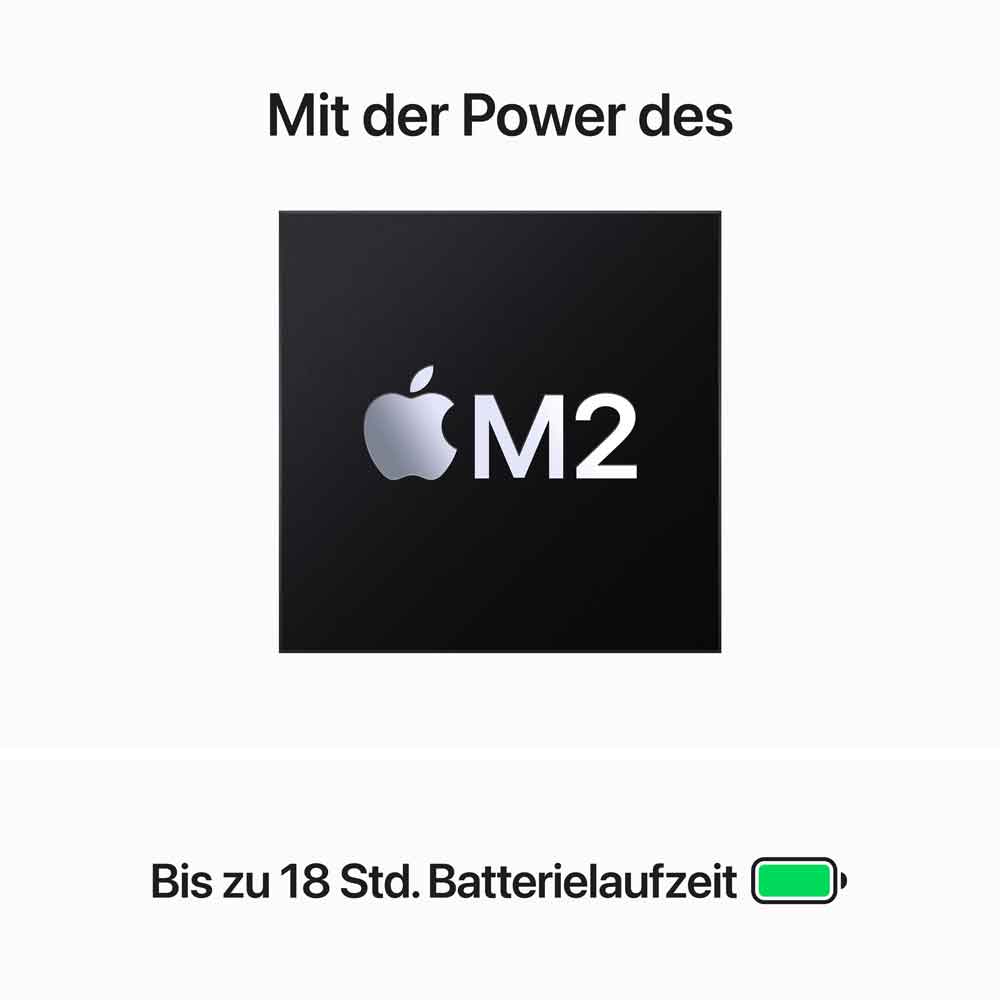 Das MacBook Air schafft mit seinem spektakulären Liquid-Retina-Display Platz für mehr von dem, was Sie lieben. Dank des M2-Chips liefert es eine rasante Leistung in einem ultraportablen Design. Das MacBook Air ist mit einem robusten Gehäuse aus 100 % recyceltem Aluminium umweltfreundlich gebaut. Und das lüfterlose Design sorgt dafür, dass es auch bei hoher Arbeitsbelastung leise bleibt.