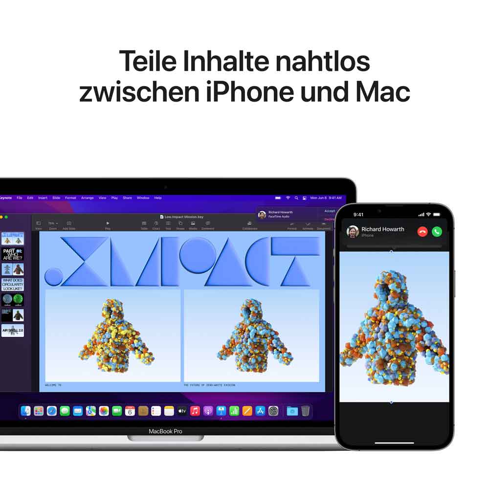 Mit dem M2 Chip bringt das 13\" MacBook Pro mehr Leistung. Das gleiche kompakte Design kommt mit bis zu 20 Stunden Batterie und einem aktiven Kühlsystem für durchgehend hohe Performance. Dazu noch ein brillantes Retina Display, eine FaceTime HD Kamera und Mikrofone in Studioqualität - und du hast den mobilen Pro Laptop.