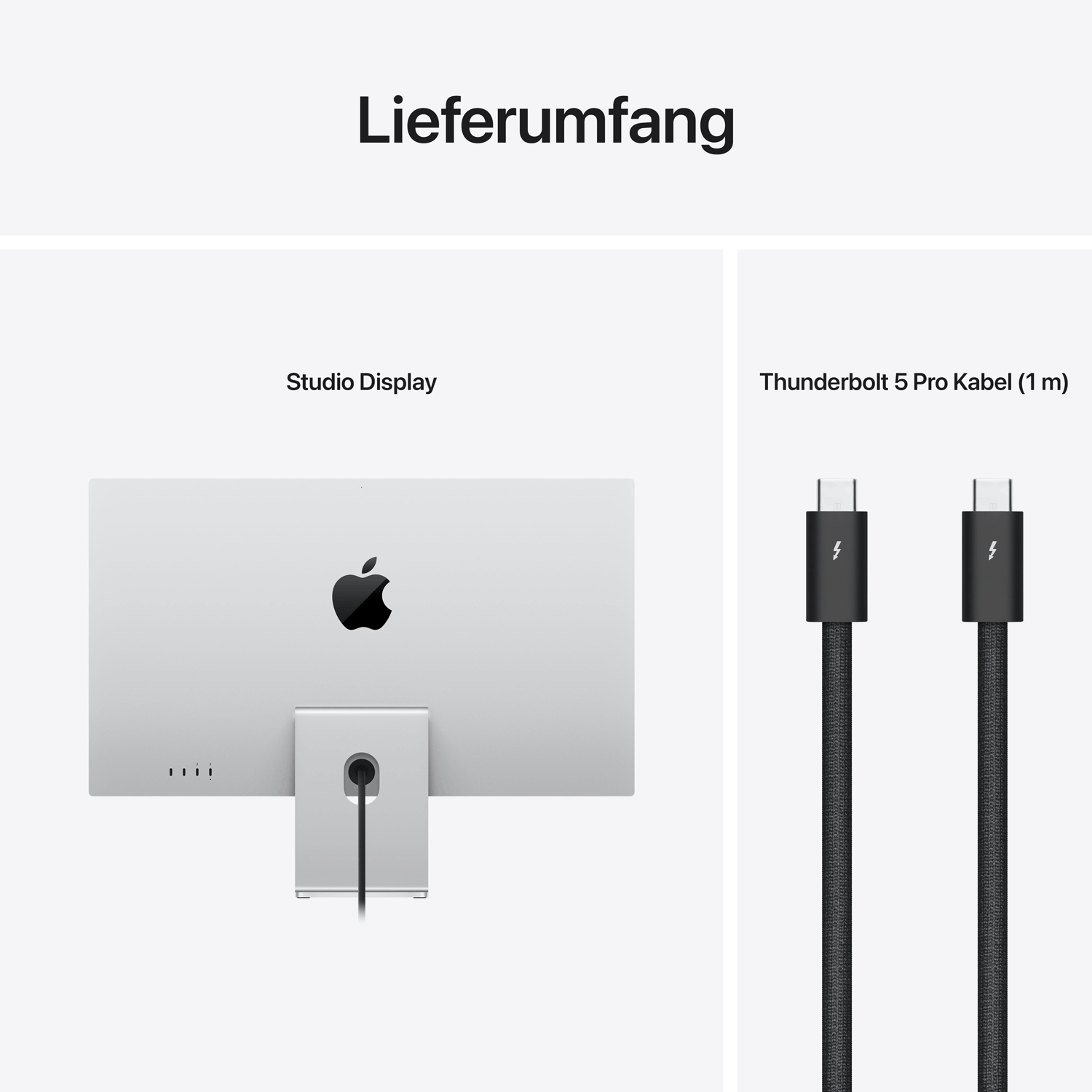 Studio Display, neigbarer Ständer, Thunderbolt 3 (USB-C) Kabel, Stromkabel |