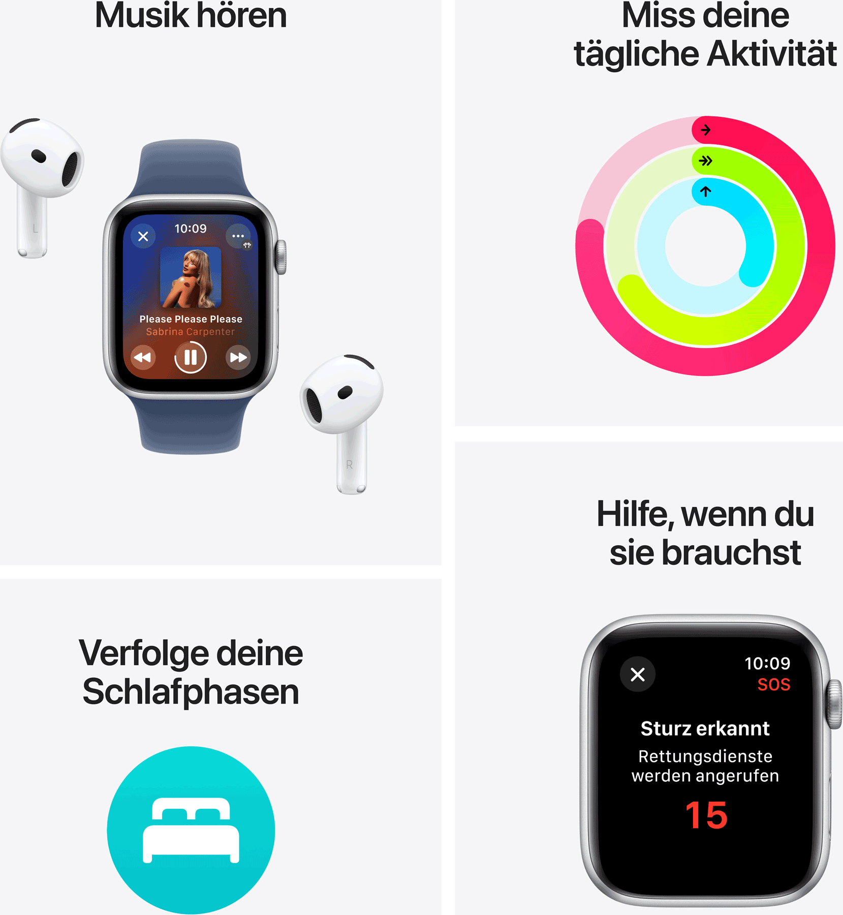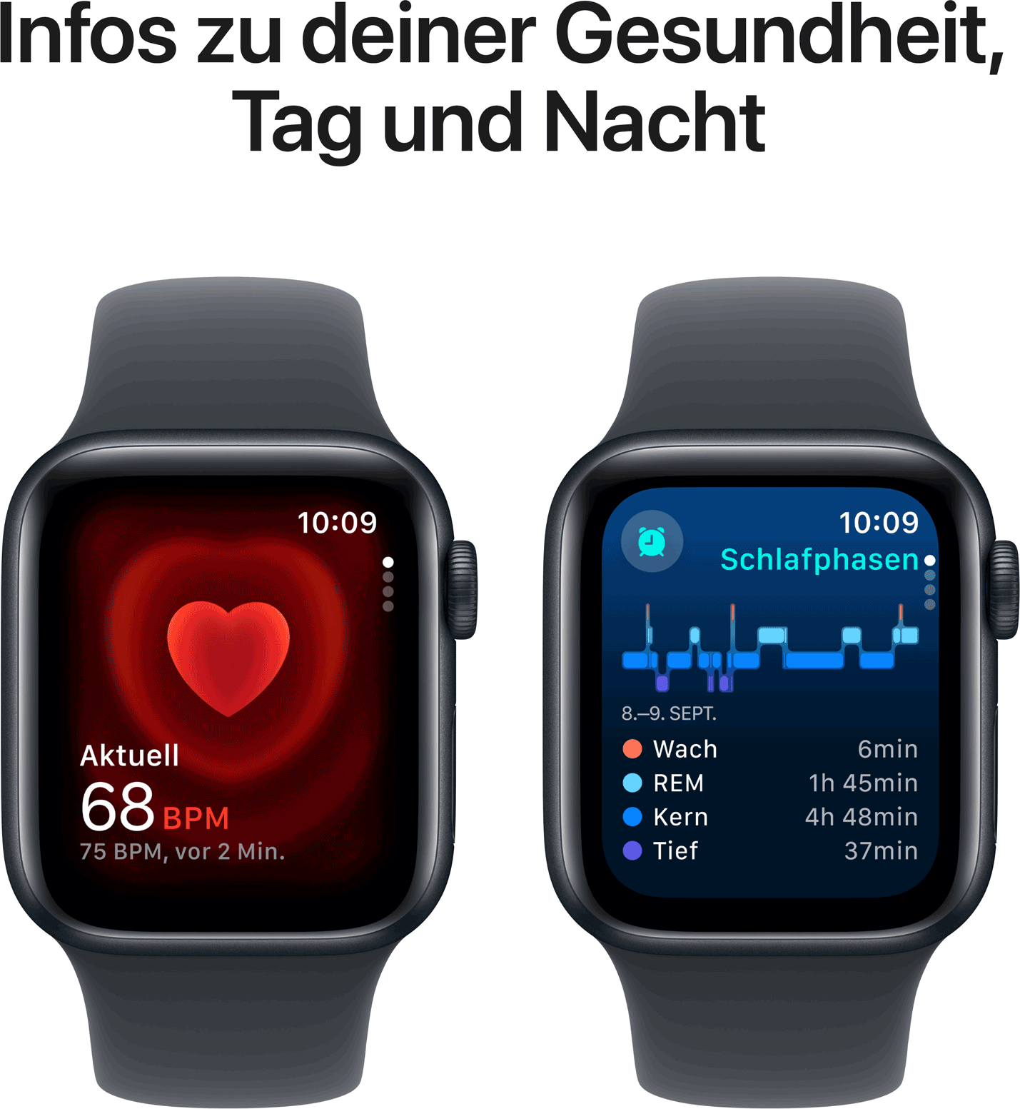 • WARUM APPLE WATCH SE - Alles, was du brauchst, um motiviert, aktiv, verbunden und sicher zu bleiben und deine Gesundheit zu tracken. watchOS 11 bringt mehr Intelligence, Personalisierung und Konnektivität. Mit Features wie Sturzerkennung und fortschrittlichen Trainingsmesswerten hat die Apple Watch SE ein unglaubliches Preis-Leistungs-Verhältnis.