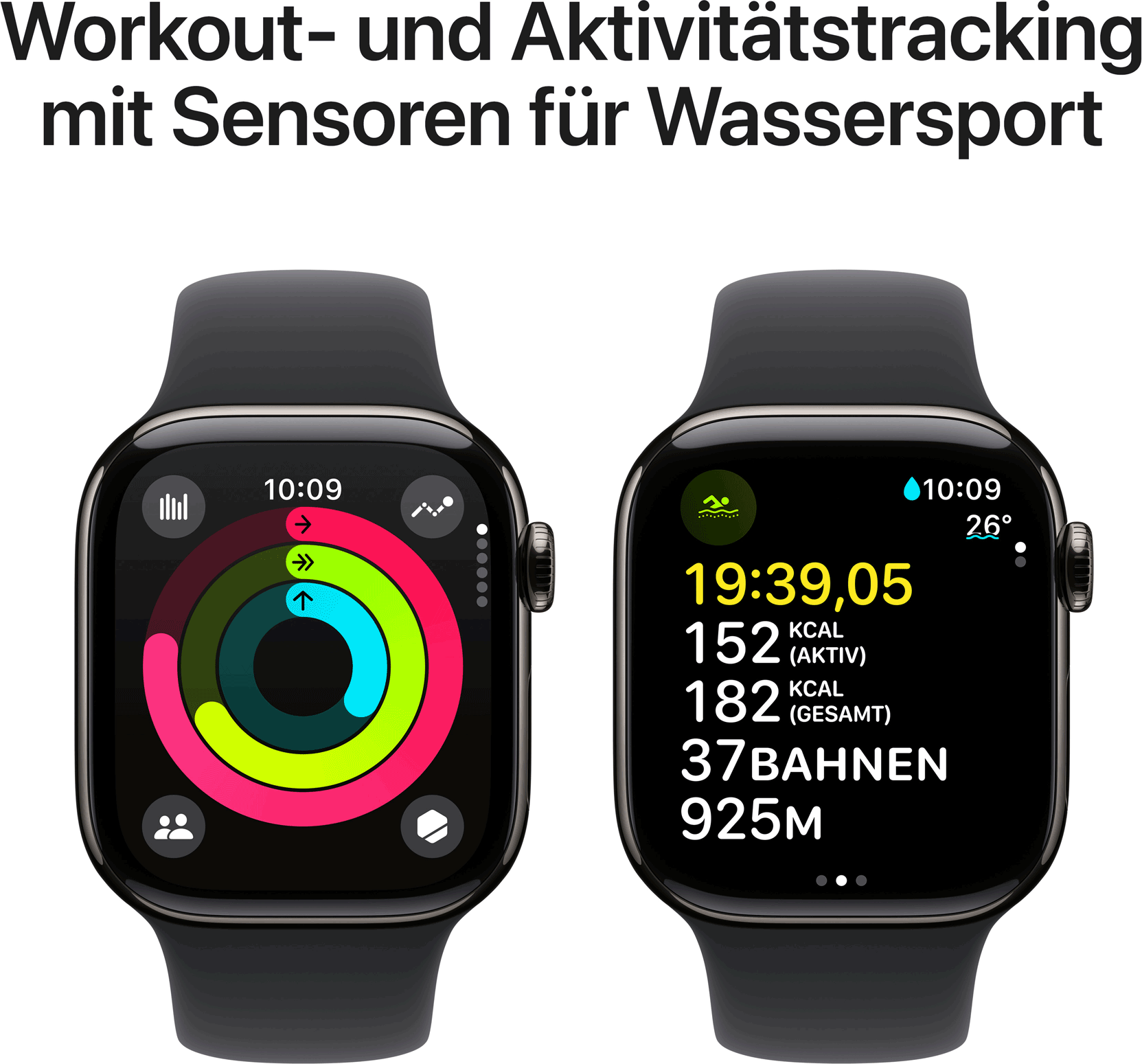 • Apple Watch Series 10 GPS + Cellular 42mm Slate Titanium Case mit Black Sport Band - S/M (MWXG3QF/A) (B-Ware) (geöffnet)