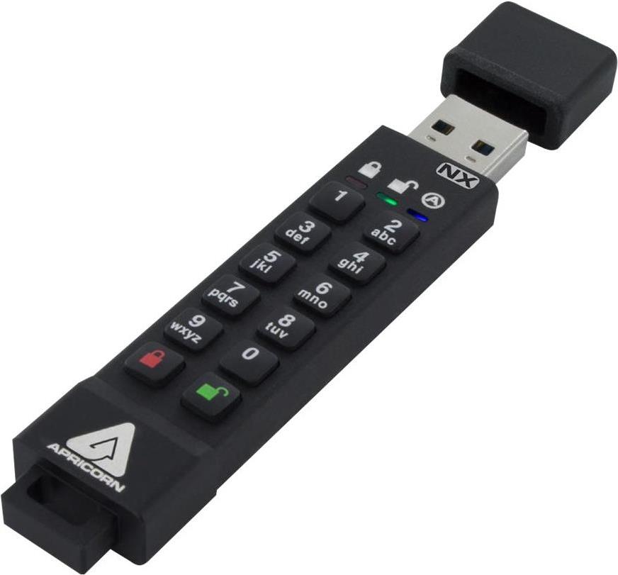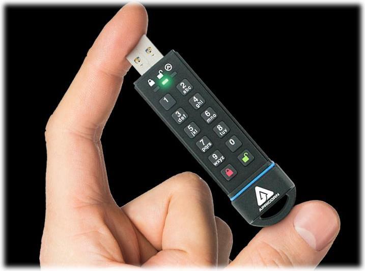Wasserfest, automatische Sicherung, änderbare PIN, PIN-Tastatur mit 10 Tasten, Aluminiumgehäuse, Read-Only Access Mode, staubabweisend, Vandalismusschutz, Self-Destruct PIN, Antrieb-Zurückstellung, Lock Override Mode, 2 Schreibschutz-Modi |
