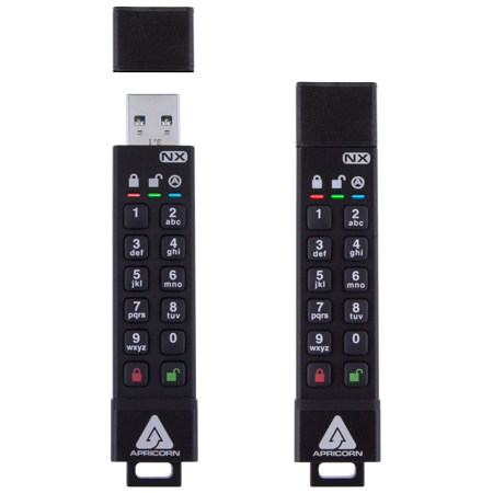 Wasserfest, automatische Sicherung, änderbare PIN, PIN-Tastatur mit 10 Tasten, Aluminiumgehäuse, Read-Only Access Mode, staubabweisend, Vandalismusschutz, Self-Destruct PIN, Antrieb-Zurückstellung, Lock Override Mode, 2 Schreibschutz-Modi |