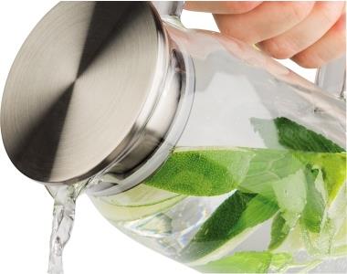 APS Glaskaraffe mit Deckel, 1,5 Liter, Glas/Edelstahl Behälter aus Glas mit Griff, Deckel aus Edelstahl, - 1 Stück (10792)