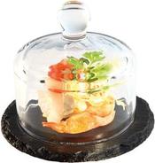 APS Naturschieferplatte mit Glashaube, Durchmesser: 105 mm Materialstärke: 6-9 mm, gebrochene Kanten, glänzende - 1 Stück (984)