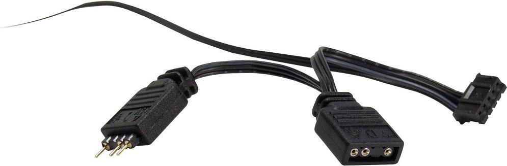 Der Anschluss erfolgt temperaturgeregelt über den 4-Pin PWM-Anschluss am Mainboard und wird zusätzlich noch am 3-Pin 5V RGB-Header des Mainboards angeschlossen, welcher für die synchronen Farbwechsel aller angeschlossenen Komponenten zuständig ist.