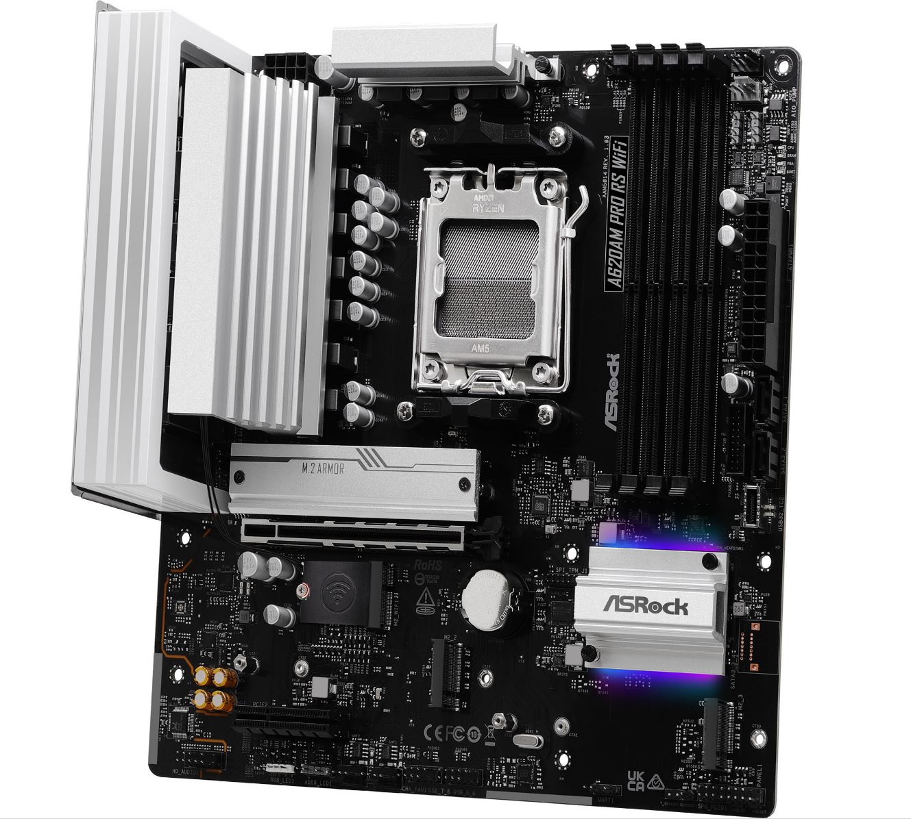 ASRock A620AM Pro RS WiFi AM5 mATX HDMI/DP retail - AMD Sockel AM5 (Ryzen Zen4) - Micro/Mini/Flex-ATX (90-MXBSW0-A0UAYZ)