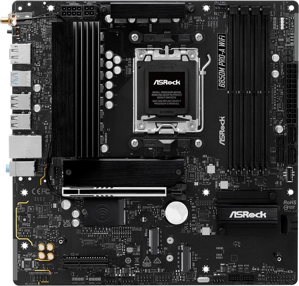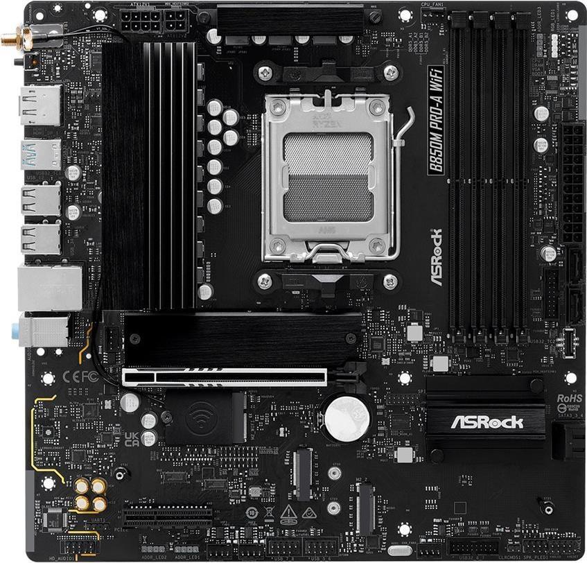 ASRock B850M Pro-A WiFi Mainboard, 2x Serial ATA-Kabel, 1x M.2-Schraube, I/O-Abschirmung, ASRock WiFi-Antenne (2,4/5/6 GHz), Software |