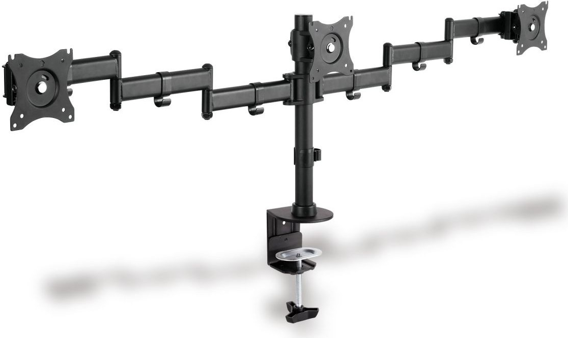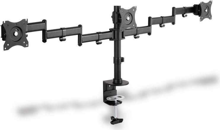 DIGITUS DA-90362 - Befestigungskit (Spannbefestigung für Tisch, 2 Gelenkarme) für 3 Monitore - Schwarz - Bildschirmgröße: 38.1-69 cm (15"-27")