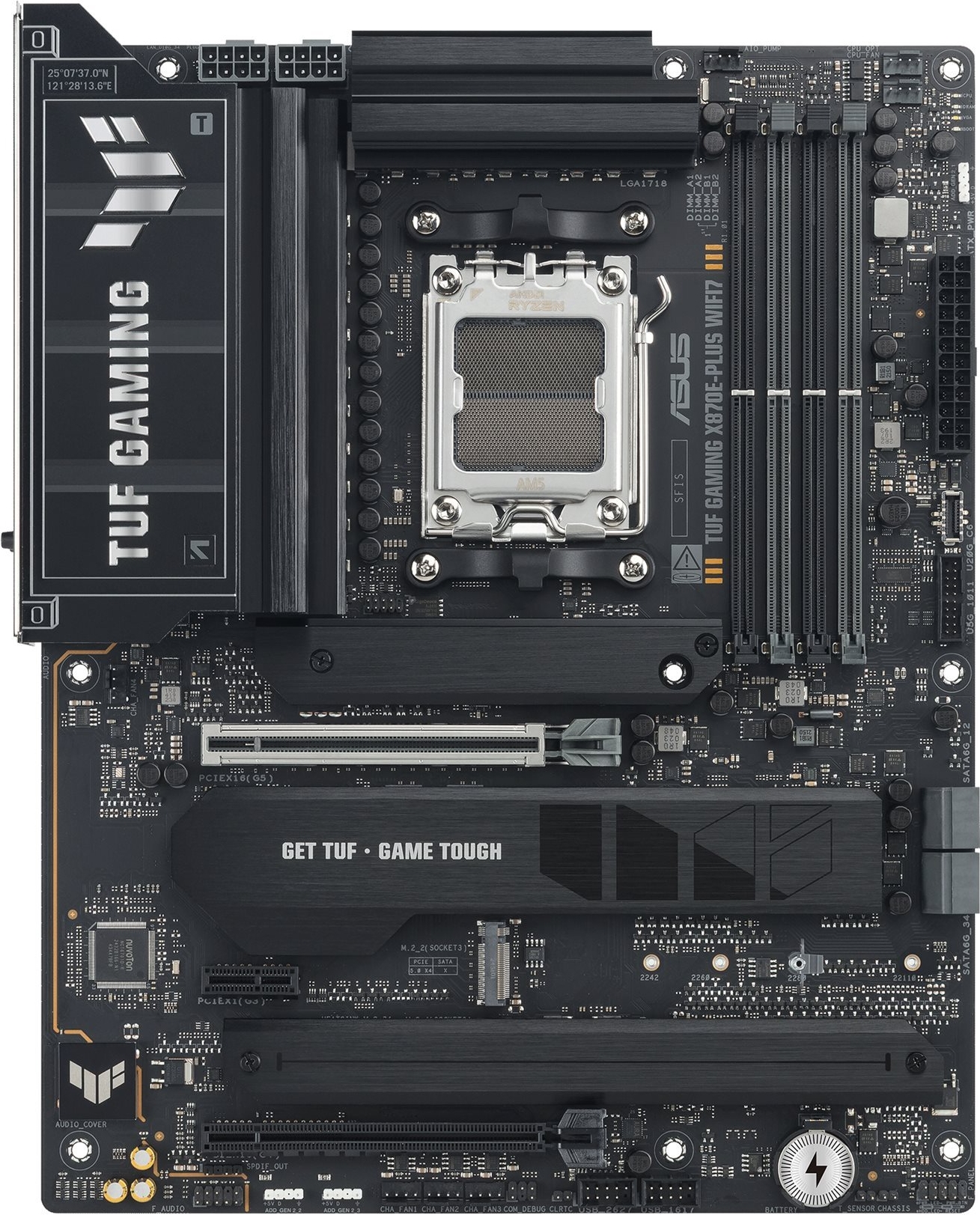 Das ASUS TUF GAMING X870E-PLUS WIFI7-Motherboard wurde für Gamer entwickelt, die Zuverlässigkeit und Leistung suchen. Dieses Motherboard basiert auf dem AMD X870E-Chipsatz, ist mit den Prozessoren der Serien Ryzen 7000, 8000 und 9000 kompatibel und unterstützt bis zu DDR5 SDRAM, wodurch es die erforderliche Bandbreite und Geschwindigkeit für leistungsstarkes Gaming und Multitasking bietet. Mit vier DIMM-Steckplätzen und einer maximalen RAM-Geschwindigkeit von 8000 MT/s (übertaktet) bewältigt es anspruchsvolle Anwendungen mühelos. Das Motherboard ist mit robusten Konnektivitätsoptionen ausgestattet und verfügt über 2,5-Gigabit-Ethernet und Wi-Fi 7, was eine schnelle Datenübertragung und ein stabiles Online-Gaming-Erlebnis gewährleistet. Die Integration mehrerer USB-Anschlüsse, darunter USB 3.2 Gen 1 und USB-C 3.2 Gen 2x2, ermöglicht eine vielseitige Konnektivität mit Peripheriegeräten und Speichermedien. ASUS hat verschiedene Hardware-Funktionen wie ESD Guards, TUF LANGuard und ASUS SafeSlot integriert, um die Haltbarkeit zu verbessern und das Motherboard zu schützen, was es zu einer soliden Wahl für jedes Gaming-Setup macht.