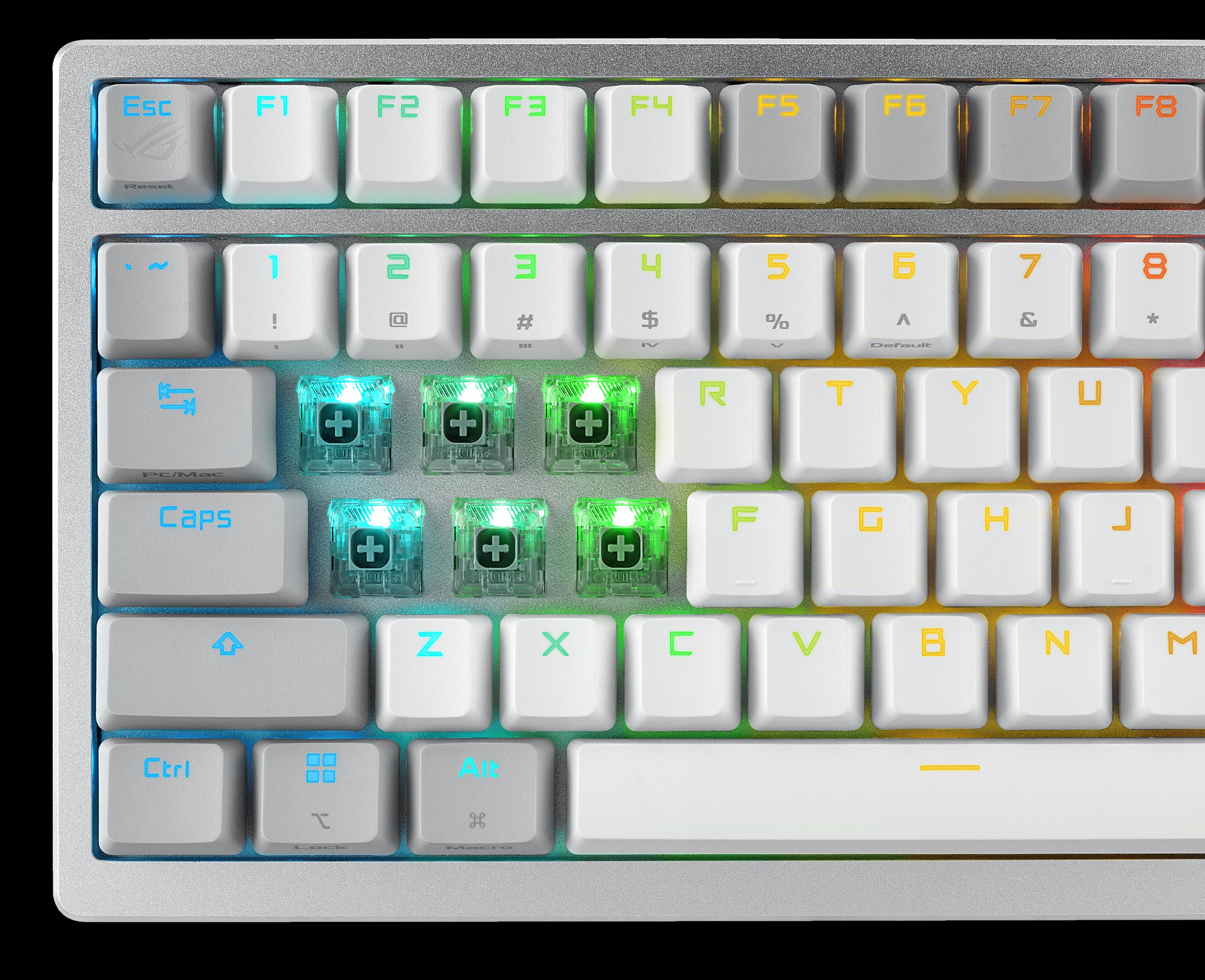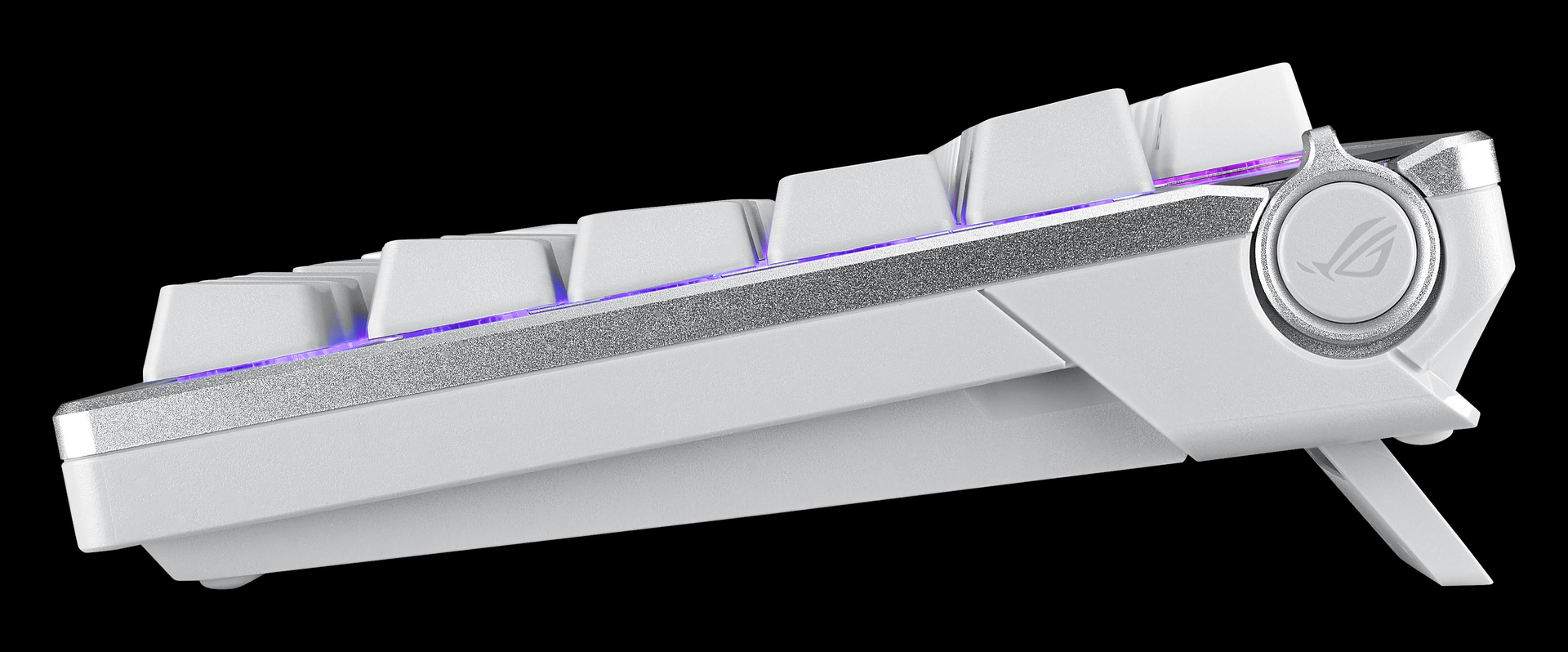 ROG Azoth Gaming Custom Keyboard mit 75er-Tastaturformfaktor, Dichtungshalterung, dreilagigem Dämpfungsschaum und Metallabdeckung, hochgradig anpassbar mit Hot-Swap-fähigen, vorgeschmierten mechanischen ROG NX-Schaltern, ROG-Tastaturstabilisatoren, PBT-Doubleshot-Tastenkappen und Lube-Kit, Tri-Mode-Verbindung mit 2,4-GHz-SpeedNova-Technologie, OLED-Display, Drei-Wege-Steuerknopf, drei Neigungswinkel und Mac-Unterstützung.