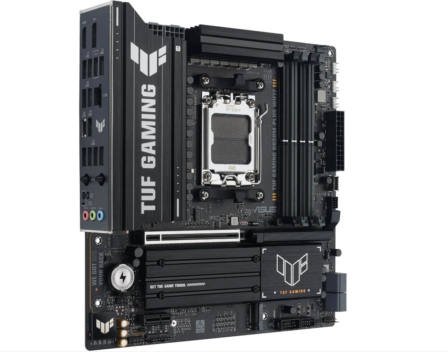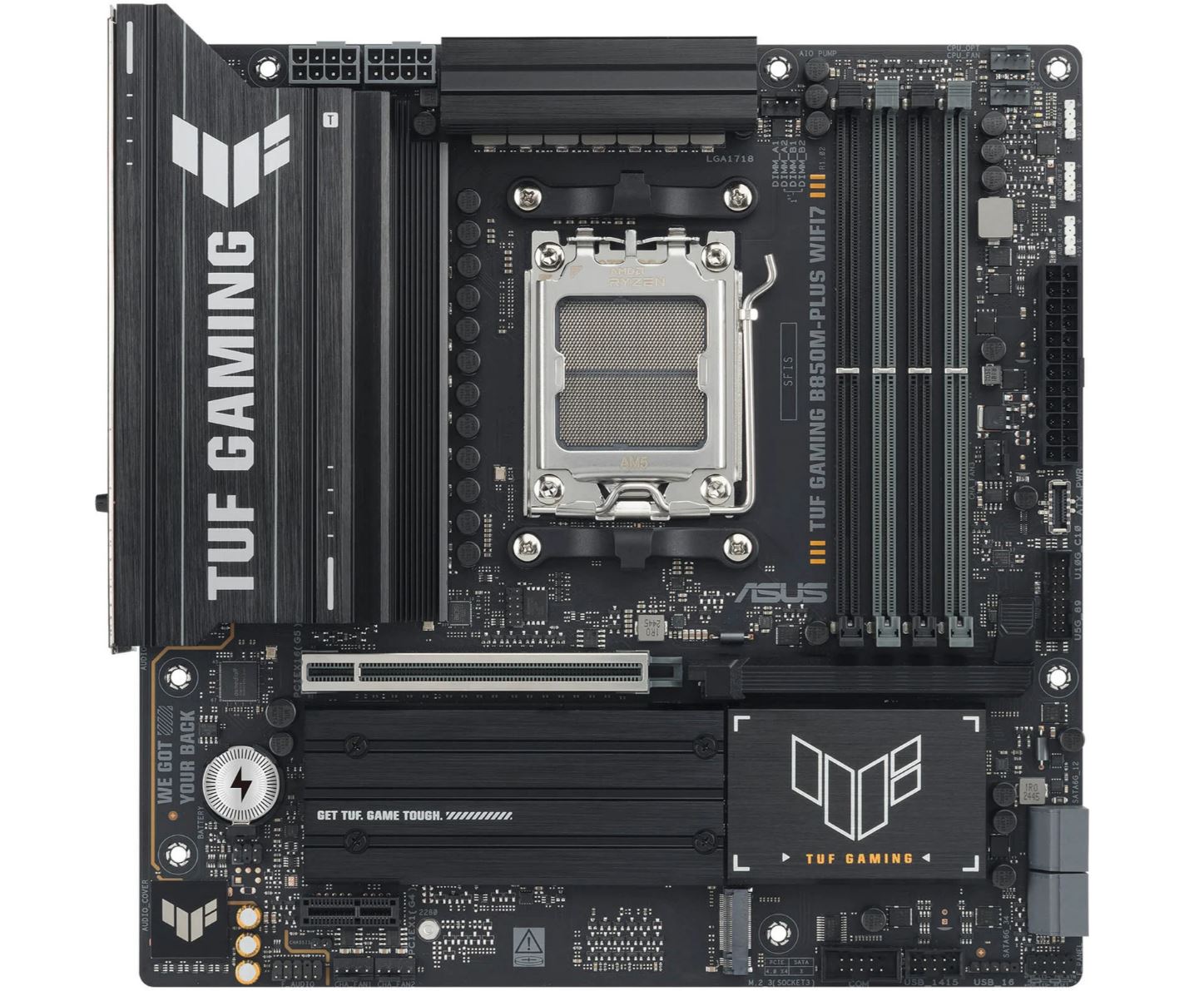 Erleben Sie zuverlässige Leistung und Effizienz mit dem ASUS TUF GAMING B850M-PLUS WIFI7-Motherboard. Dieses Micro-ATX-Motherboard wurde für Gamer und Kreative entwickelt und unterstützt Prozessoren der AMD Ryzen 7000/8000/9000-Serie, wodurch die Kompatibilität mit leistungsstarker Hardware gewährleistet ist. Es verfügt über vier DIMM-Steckplätze für DDR5-SDRAM mit Geschwindigkeiten von bis zu 8000 MT/s bei Übertaktung und bietet damit reichlich Speicherkapazität für anspruchsvolle Anwendungen. Fortschrittliche Kühlungslösungen und langlebige Komponenten verbessern die Langlebigkeit und Stabilität, während das benutzerfreundliche BIOS praktische Funktionen für eine schnelle Konfiguration und Optimierung bietet.