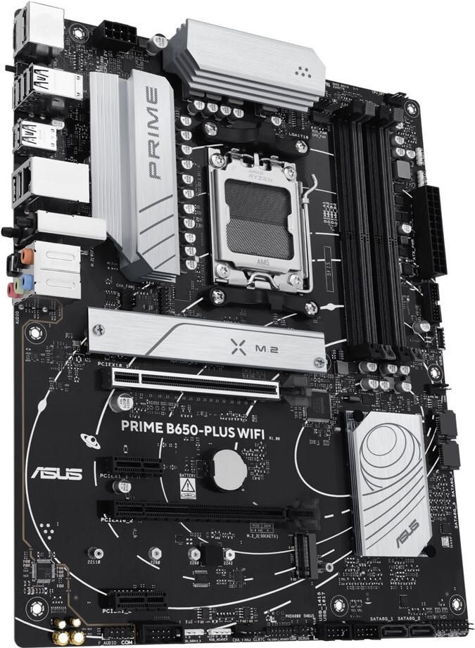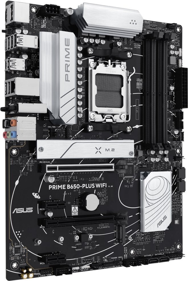 Das ASUS Prime B650-Plus WiFi-Motherboard wurde entwickelt, um Leistung und umfassende Konnektivität für Ryzen-Prozessoren zu bieten. Mit Unterstützung für DDR5-RAM mit bis zu 3600 MHz Übertaktung gewährleistet dieses Motherboard eine schnelle Datenverarbeitung und Zuverlässigkeit für anspruchsvolle Anwendungen. Es verfügt über vier DIMM-Steckplätze, die eine Dual-Channel-Speicherarchitektur zur Optimierung der Systemleistung ermöglichen. Ausgestattet mit verschiedenen USB-Anschlüssen, darunter USB-C 3.2 Gen 2, und mehreren M.2-Steckplätzen, ermöglicht es fortschrittliche Speicheroptionen und eine schnelle Datenübertragung. Die Integration von 2,5-Gigabit-Ethernet und Bluetooth 5.2 bietet moderne Netzwerkfunktionen für schnelle und stabile Verbindungen. Das Board verfügt außerdem über ein umfassendes Audioausgabesystem, das den High-Definition-Audio-Standards entspricht. Mit einer Reihe von Ausgängen, darunter Audio-Line-In und mehrere Audio-Line-Out-Konfigurationen, ist es ideal für Audio-Enthusiasten. Zusätzliche Funktionen wie ASUS EZ DIY, TurboV EVO und Überspannungsschutz tragen zu einer benutzerfreundlichen Erfahrung und erhöhter Sicherheit bei. Das ASUS Prime B650-Plus WiFi-Motherboard wurde mit einer 6-lagigen Leiterplatte für Langlebigkeit und Stabilität entwickelt und ist eine zuverlässige Grundlage für Ihren nächsten PC-Bau.