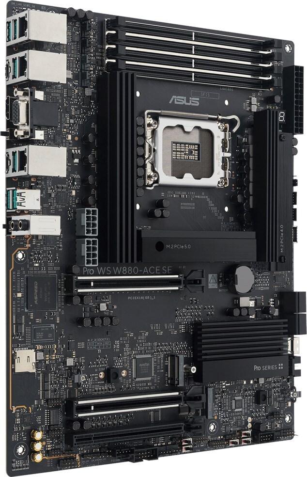 Das ASUS Pro WS W880-ACE SE-Motherboard wurde für effizientes Hochleistungs-Computing entwickelt. Es unterstützt Intel Core-Prozessoren der 12. und 13. Generation, sodass Benutzer von fortschrittlichen Verarbeitungsfunktionen profitieren können. Mit vier DIMM-Steckplätzen für DDR5-SDRAM können die Speichergeschwindigkeiten durch Übertaktung auf bis zu 4533 MHz gesteigert werden. Dieses Motherboard ist mit High-Definition-Audiofunktionen ausgestattet, die vom Realtek ALC1220P-Codec bereitgestellt werden und ein hochwertiges Audioerlebnis in verschiedenen Anwendungen gewährleisten. Für die Datenverwaltung bietet es umfangreiche Speicheroptionen, darunter 8 x SATA-600 (RAID) und mehrere M.2-Sockel sowie Unterstützung für die Intel Rapid Storage Technology. Zu den Konnektivitätsoptionen gehören USB 3.2 Gen 2 und Thunderbolt 4, die eine schnelle Datenübertragung ermöglichen. Mit fortschrittlichen Hardware-Funktionen wie ASUS Q-Design für eine einfachere Installation und einer robusten BIOS-Schnittstelle für die Systemverwaltung ist das ASUS Pro WS W880-ACE SE maßgeschneidert für Enthusiasten und Profis, die eine zuverlässige und leistungsstarke Workstation aufbauen möchten.
