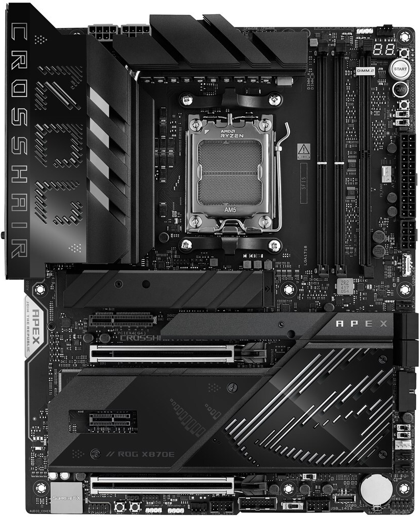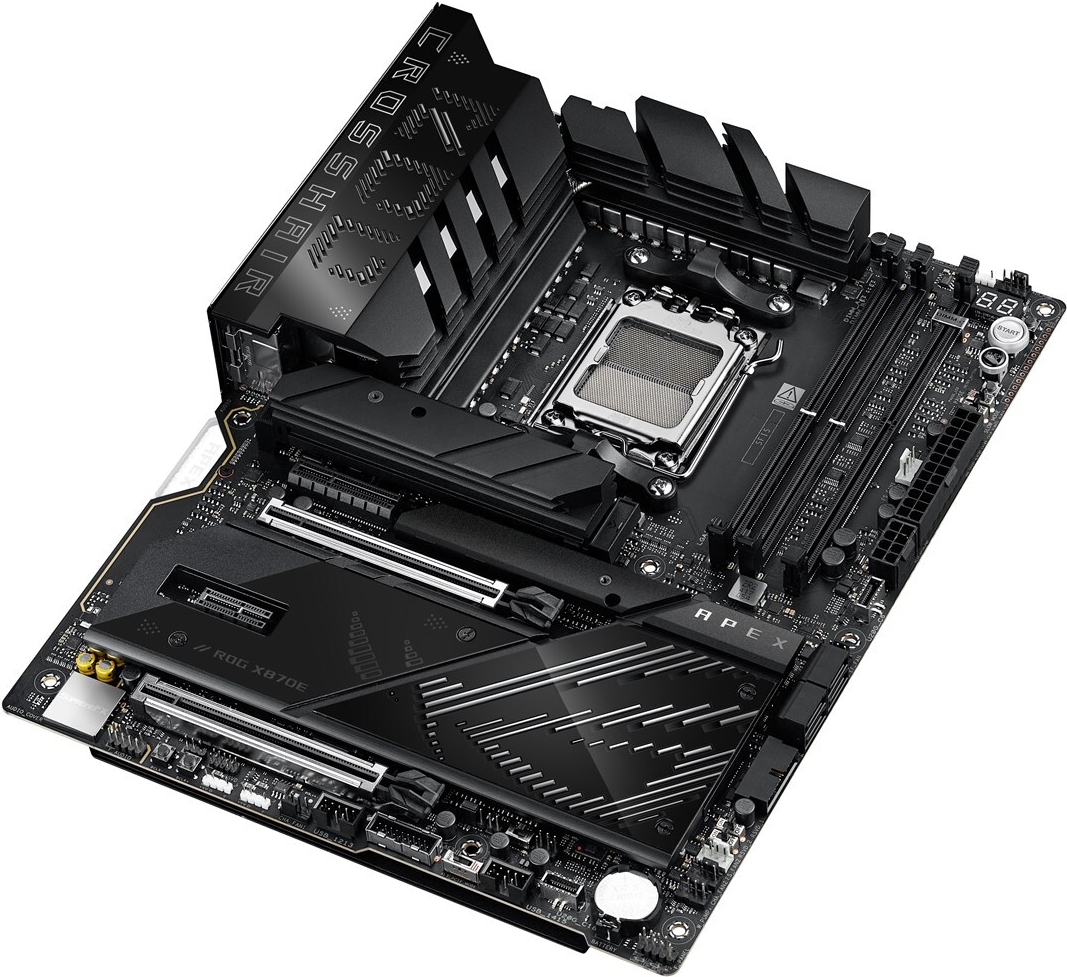 Das ASUS ROG CROSSHAIR X870E APEX-Motherboard bildet die Grundlage für leistungsstarke Systeme. Dieses ATX-Motherboard wurde speziell für Gaming und hohe Produktivität entwickelt und unterstützt Ryzen-Prozessoren, wodurch ein reaktionsschnelles und effizientes Computererlebnis gewährleistet ist. Dank RAM-Kapazitäten, die DDR5-Technologie unterstützen, können Benutzer nahtloses Multitasking und optimale Systemleistung erwarten. Ausgestattet mit einer Vielzahl von Schnittstellen, darunter mehrere USB-Anschlüsse und Audioausgänge, ermöglicht das Motherboard eine mühelose Verbindung zu Peripheriegeräten und anderen Geräten. Der SupremeFX-Codec sorgt für hochauflösenden Klang und ein beeindruckendes Klangerlebnis. Die Erweiterbarkeit steht mit mehreren M.2-Steckplätzen und PCIe-Lanes im Vordergrund und ermöglicht umfangreiche Speicherkonfigurationen und Grafikkarteninstallationen. Die Kühlungslösungen in Verbindung mit einem umfassenden BIOS-Setup ermöglichen es Anwendern, ihre Systeme bis an ihre Grenzen zu bringen, sei es für Gaming oder andere anspruchsvolle Anwendungen.