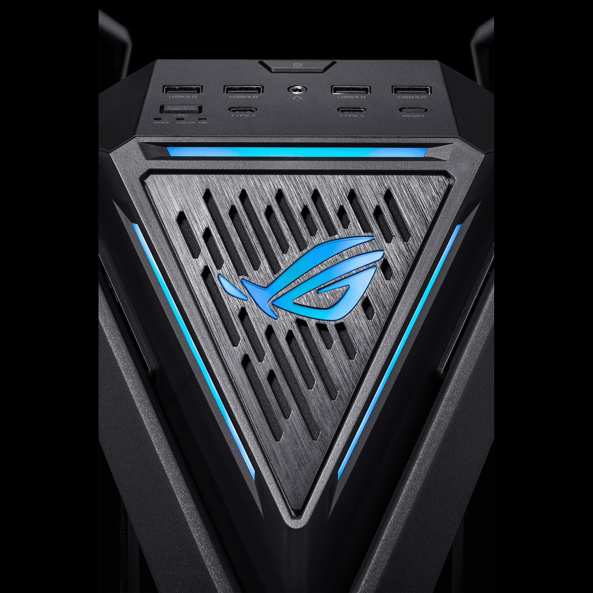 Das ROG Hyperion GR701 vereint den X-Faktor in Form und Funktion, nach dem sich Builder auf der ganzen Welt gesehnt haben. Mit Unterstützung für zwei 420-mm-Radiatoren, großen Grafikkarten, einer voll integrierten 2-Wege-Grafikkartenhalterung aus Aluminium, 60-Watt-Ladefunktion und zwei USB-C-Anschlüssen an der Vorderseite für kompatible ROG-Mainboards ist es wirklich ein PC-Gehäuse im begehrten ROG-Stil.