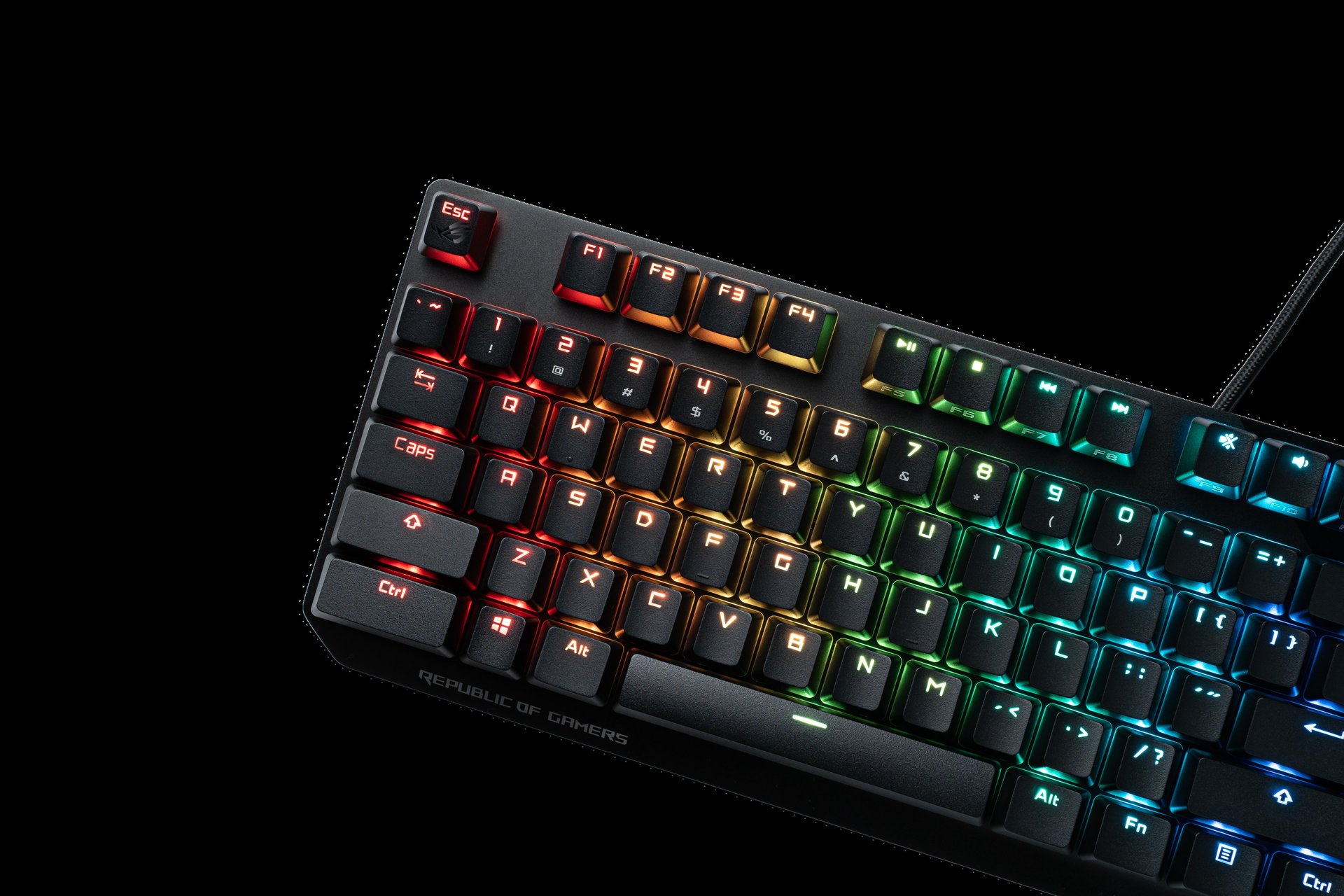 Die ROG-PBT-Doubleshot-Tastenkappen bieten neben einem einzigartigen und hochwertigen Feeling auch eine hohe Lebensdauer. Das Tastendesign wurde mit mittelhohen Tastenkappen und einem kürzeren Stift optimiert, um ein Wackeln der Tasten zu reduzieren und eine komfortablere Nutzung zu ermöglichen. Das präzise Double Shot Molding-Verfahren liefert durchsichtige Tastenkappen mit nahtlosem ROG-Schriftzug für einen einzigartigen Look und verleiht der ROG Falchion eine gleichmäßige Beleuchtung und eine Optik, die unverkennbar ROG ist.