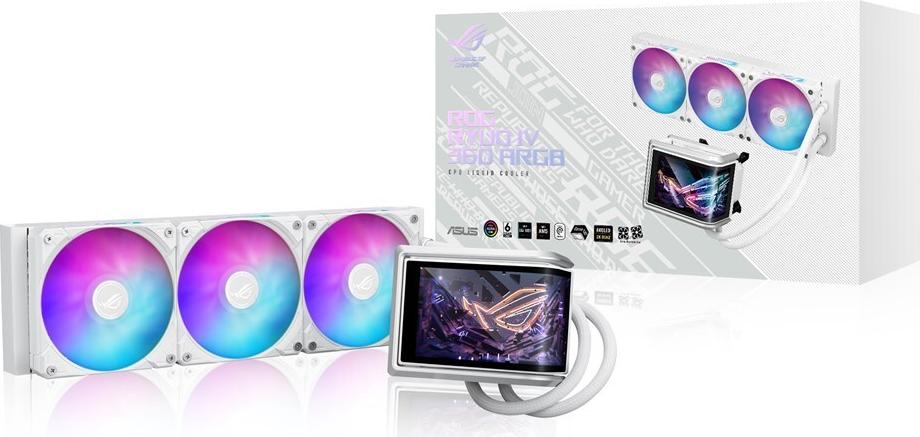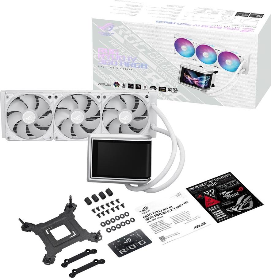 ROG Ryuo IV 360 ARGB WHT Kühler, 3 x 120 mm ARGB Lüfter, Montageset für Intel/AMD, Schraubenset, Installationsanleitung |