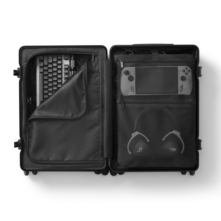 Die ASUS ROG SLASH wurde entwickelt, um die Anforderungen von Gamern unterwegs zu erfüllen. Diese 20-Zoll-Spinner-Tasche besteht aus einem robusten Aluminiumrahmen und 100 % Polycarbonat und ist sehr widerstandsfähig, während sie gleichzeitig viel Platz für Gaming-Zubehör bietet. Die wasserabweisende Oberfläche bietet Schutz vor den Elementen und bewahrt die Integrität Ihrer Ausrüstung. Ausgestattet mit einem Teleskopgriff und Rollen für einfache Mobilität, bietet sie Komfort auf Reisen.