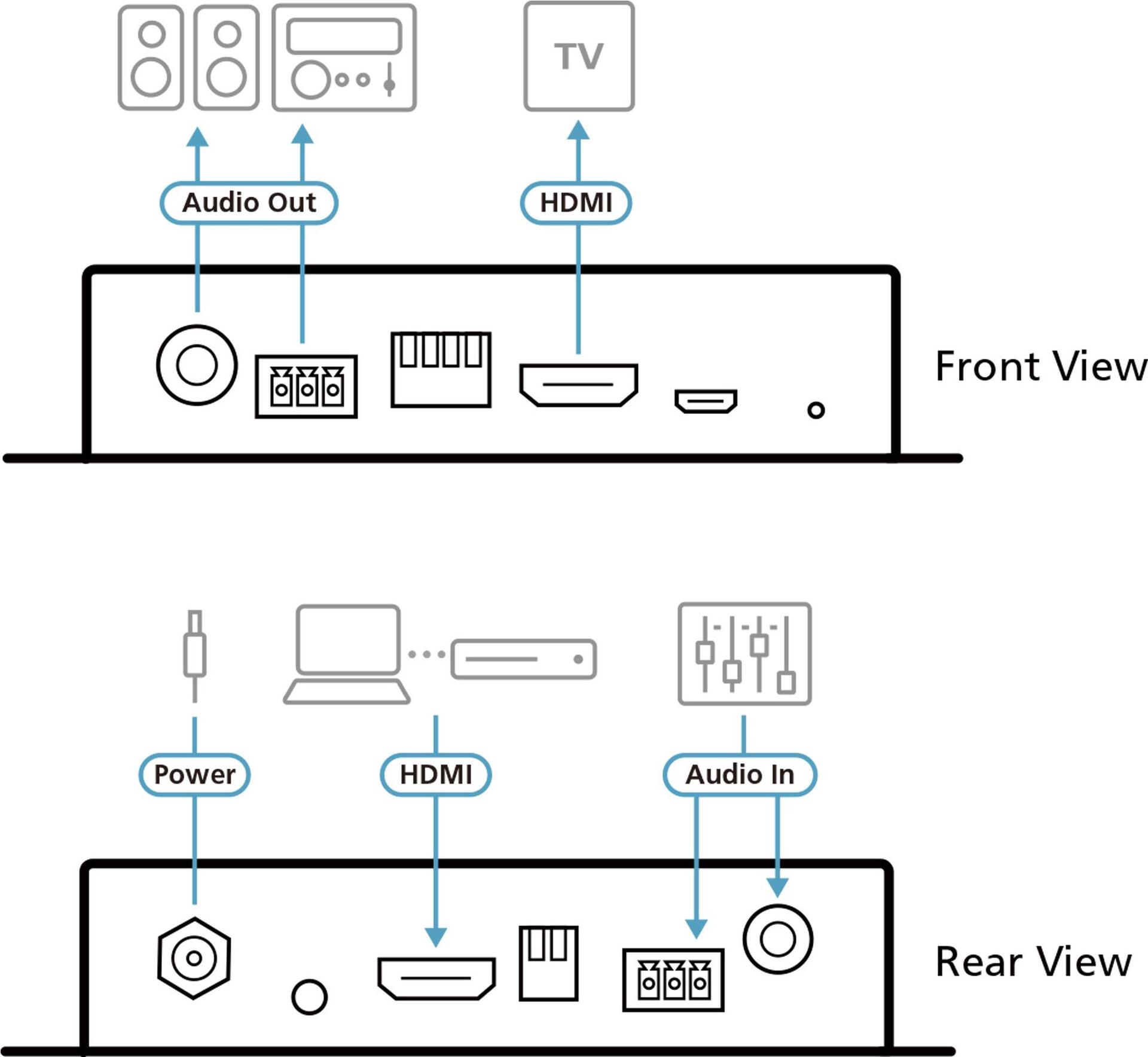 | Schnittstellen | 1 x HDMI (Eingang) - HDMI Typ A, 19-polig 1 x HDMI (Ausgang) - HDMI Typ A, 19-polig 1 x Audio (Ausgang) 1 x Audio (Eingang) 1 x Audio (Ausgang) - 3-poliger Klemmenblock 1 x Audio (Eingang) - 3-poliger Klemmenblock |