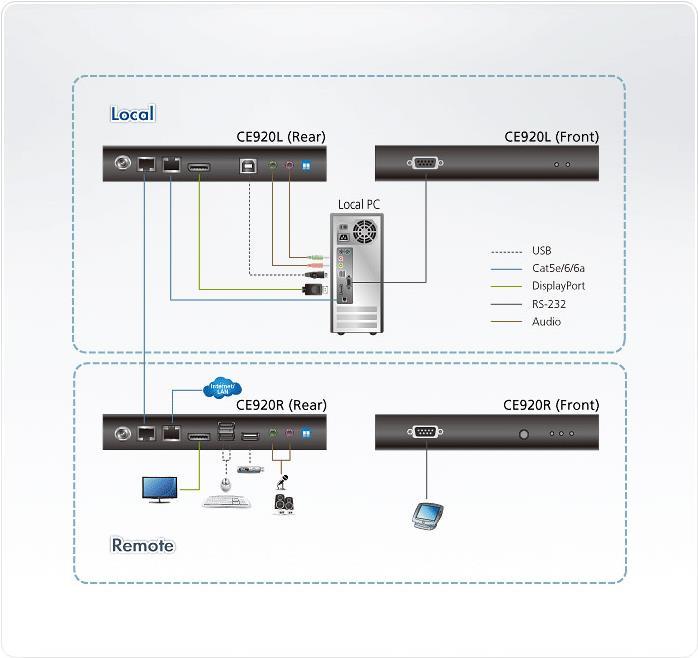 ATEN CE920 USB DP HDBaseT2.0 KVM Extende ohne Ethernet Port (CE920-ATA-G)