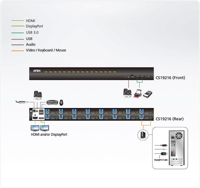 | Produktbeschreibung | ATEN CS19216 - KVM-/Audio-/USB-Switch - 16 Anschlüsse - an Rack montierbar |
