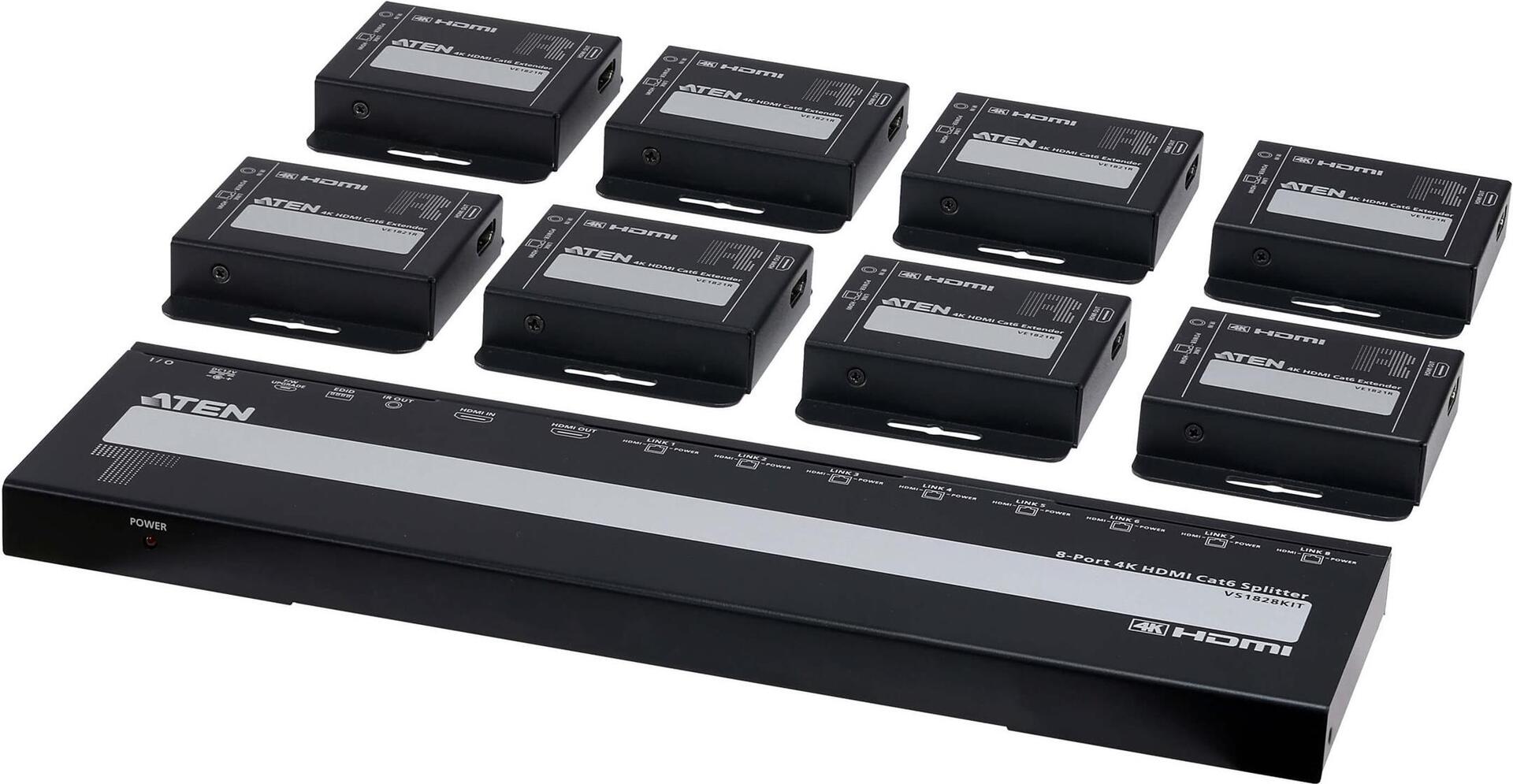 ATEN VS1828KIT 8-Port 4K HDMI Cat6 Split 8 x Receiver 1 Transmitter - 8-Port (VS1828KIT)