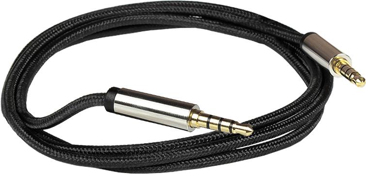 Audio Anschlusskabel High-Quality, 4-poliger 3,5mm Klinkenstecker beidseitig, Textilmantel, schwarz, 2m, PYTHON® Series (GC-M0229)