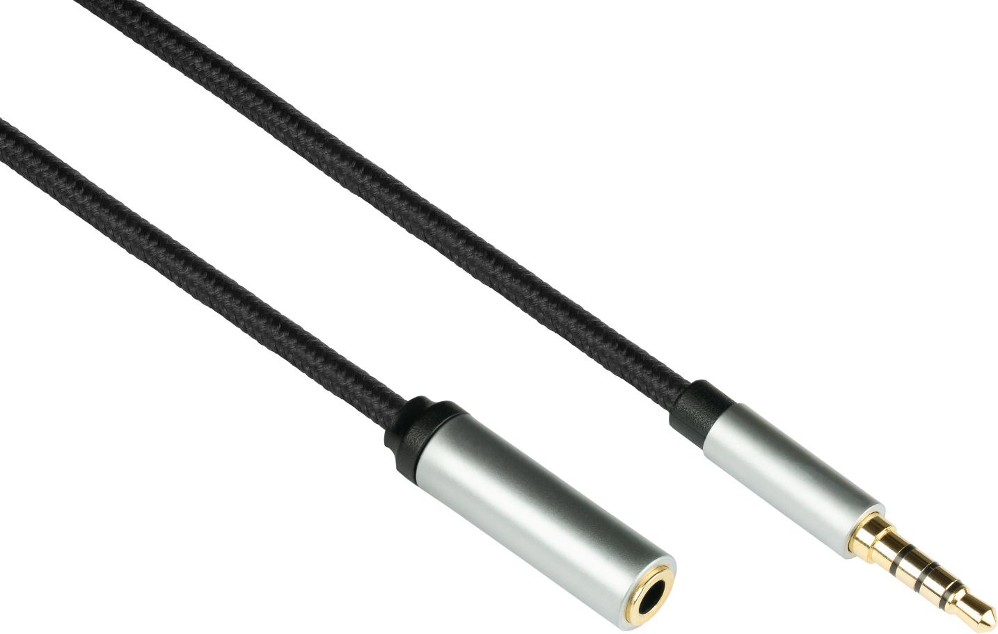 Audio Verlängerungskabel High-Quality, 4-poliger 3,5mm Klinkenstecker an Klinkenbuchse, Textilmantel, schwarz, 3m, PYTHON® Series (GC-M0240)