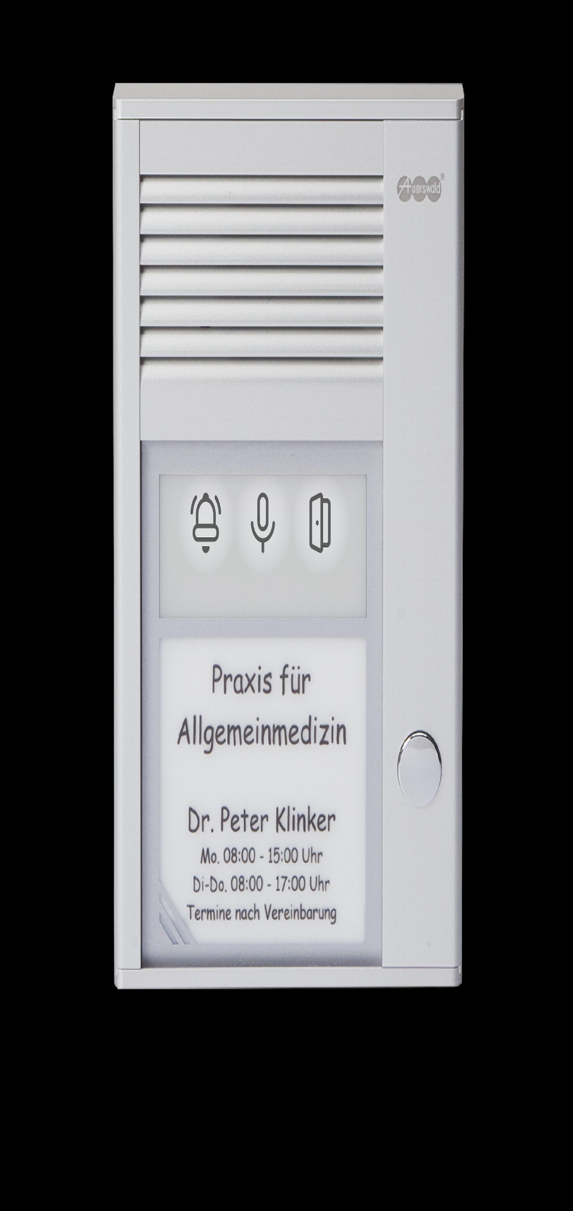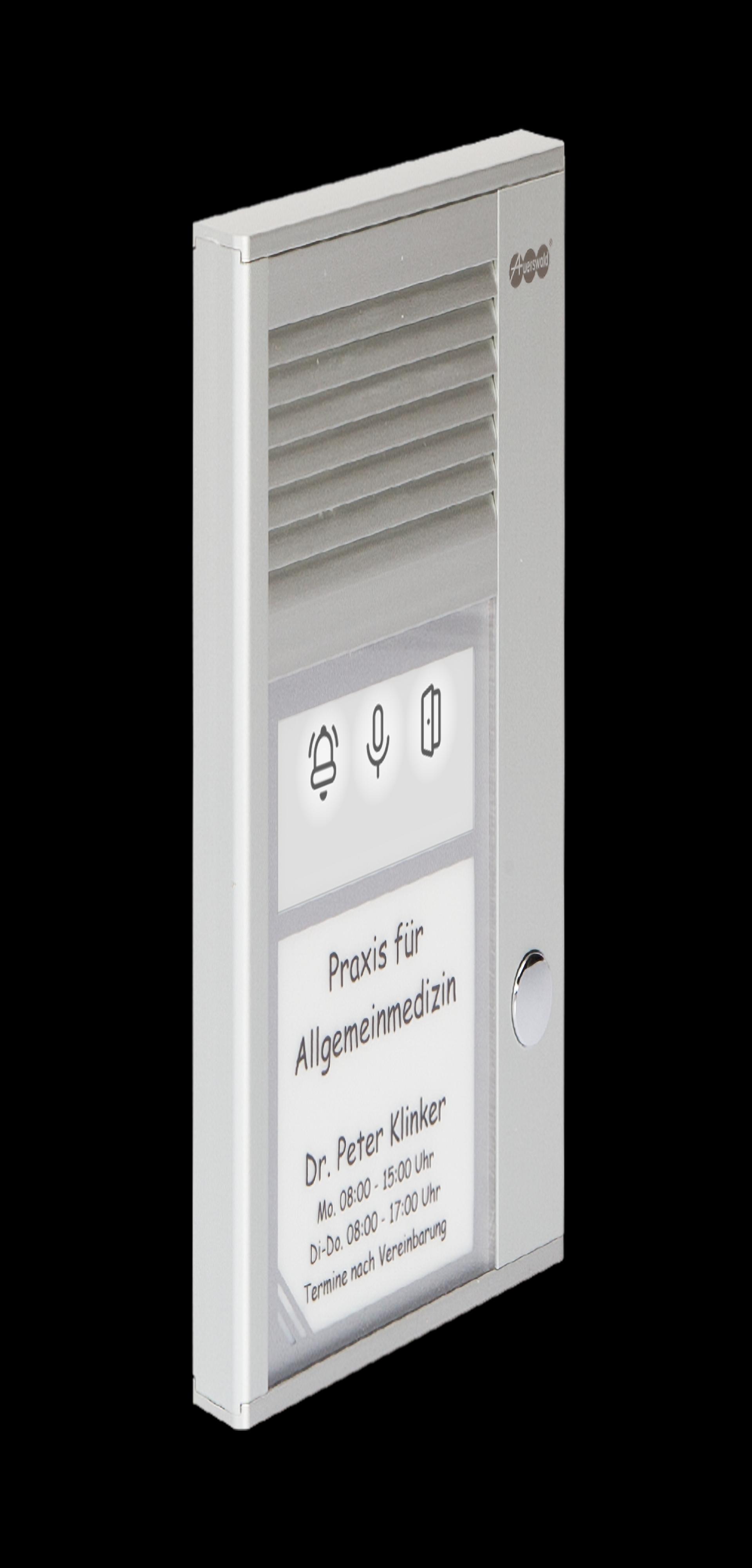 Für a/b-Schnittstellen ausgelegtes Türsprechsystem - eine elegante Visitenkarte für BesucherDie kompakten Türsprechsysteme fügen sich dezent in jede Umgebung ein, völlig unkompliziert und ohne jede bauliche Veränderung. Einfach mit zwei ...