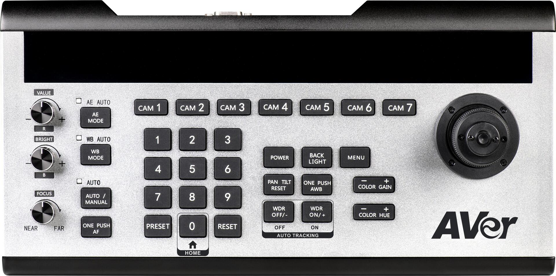 Die AVer CL01 ist eine professionelle PTZ-Kamerasteuerung mit einer robusten Kommunikationsschnittstelle auf Grundlage der Protokolle VISCA und Pelco-D / P. Sie unterstützt RS-422 / RS-485 / RS-232 / IP-Steuerungen für die Kompatibilität mit den meisten PTZ-Kameras. Die einfache Konfiguration macht die Bedienung einfach, mit sieben Kamera-Shortcut-Kanälen, drei unendlichen Drehknöpfen u.v.m.