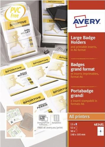 Avery 4834XL Ausweisehülle/ -halter Namensschild-Halterung Polyester 50 Stück(e) (4834XL)
