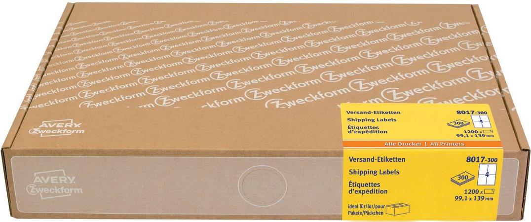 Avery Zweckform - Papier - permanenter Klebstoff - weiß - 99,1 x 139 mm 1200 Etikett(en) (300 Bogen x 4) Versandetiketten (8017-300)
