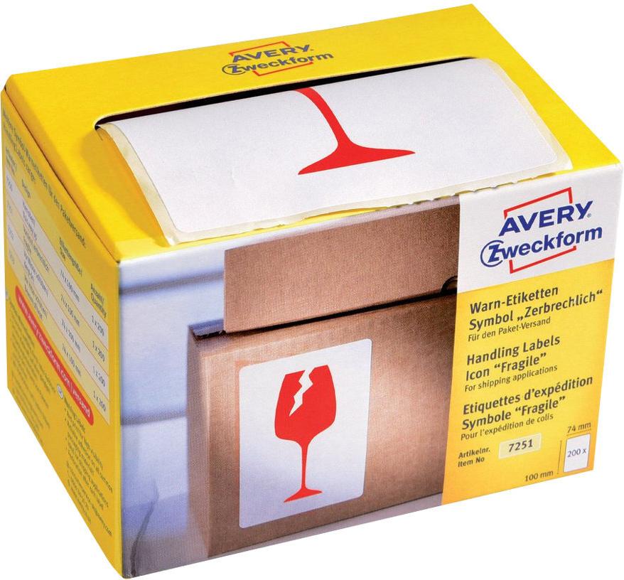 Sie kennen das? Zerbrechliche und fragile Waren kommen beim Versand oft nicht mehr im perfekten Zustand an. Damit zerbrechliche oder empfindliche Waren und Produkte auf dem Transportweg nicht durch zu grobes Handling oder Unachtsamkeit zu Bruch gehen, können Sie mit den qualitativ hochwertigen Warnetiketten von Avery Zweckform mit auffällig neonrotem Symbol entgegenwirken.