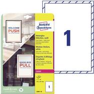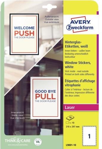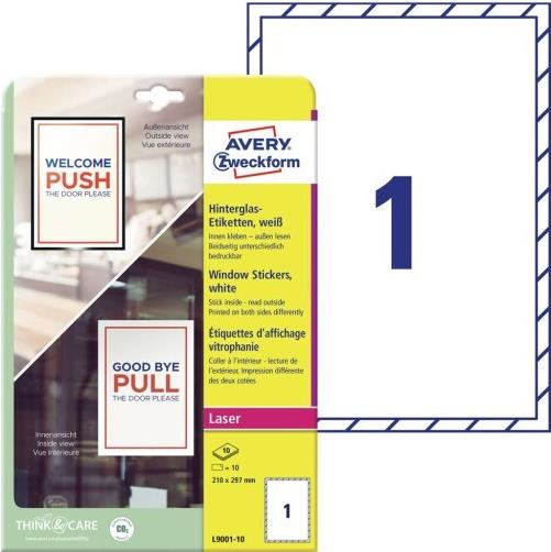 AVERY Zweckform Hinterglas-Etiketten, 210 x 297 mm, weiß Folien-Etikett für Laserdrucker, wiederablösbar, wetterfest, - 1 Stück (L9001-10)