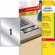 Für die professionelle Kennzeichnung von elektronischen Geräten, Produkten aus Metall oder in der Lagerhaltung: Mit den hochwertigen Typenschild-Etiketten von Avery Zweckform sind Sie auf der sicheren Seite. Die silberfarbenen, beschichteten Folienetiketten eignen sich nicht nur zur Inventarisierung, sondern sind z. B. auch ideal für Hinweisschilder und Piktogramme. Denn sie sind öl- und schmutzbeständig, resistent gegen UV-Strahlung, temperaturbeständig (-40 °C bis +150 °C) und wasser- und reißfest.Die silbernen Typenschild-Etiketten überzeugen mit einem gestochen scharfem Druckbild ohne Verwischen. Die vielseitig verwendbaren Aufkleber bieten Ihnen natürlich eine Top-Qualität mit zuverlässig starker und permanenter Klebkraft auf den verschiedensten Oberflächen.Produkttext[/head]Für die professionelle Kennzeichnung von elektronischen Geräten, Produkten aus Metall oder in der Lagerhaltung: mit den hochwertigen Typenschild-Etiketten von Avery Zweckform sind Sie auf der sicheren Seite. Die silberfarbenen, beschichteten Folienetiketten im größeren Format 210x297mm eignen sich nicht nur zur Inventarisierung, sondern sind z.B. auch ideal für Hinweisschilder und Piktogramme. Denn sie sind öl- und schmutzbeständig, resistent gegen UV-Strahlung, temperaturbeständig (-40°C bis +150°C) und wasser- und reißfest.Unsere silbernen Typenschild-Etiketten überzeugen mit einem gestochen scharfem Druckbild ohne Verwischen. Die vielseitig verwendbaren Aufkleber bieten Ihnen natürlich unsere bewährte Top Qualität mit zuverlässig starker und permanenter Klebkraft auf den verschiedensten Oberflächen. Diese Qualität stellen wir durch regelmäßige Tests in unseren Prüflabors sicher. Sie können sich dabei auf einen garantiert staufreien Druckerdurchlauf ohne Klebstoffablagerungen im Drucker verlassen. Die Etiketten können auf allen gängigen Farb/Laserdruckern bedruckt werden.Ganz einfach in wenigen Schritten zum perfekten Etikett:Als zusätzlichen Service bieten wir Ihnen für alle Etiketten in unserem Sortiment unseren kostenlosen Online Designer Avery® Design & Print. Das Besondere daran: Wir bieten Ihnen hier eine exklusive Auswahl an vorgestalteten, modernen Vorlagen, die regelmäßig mit aktuellen und innovativen Designs erweitert wird. Sie können natürlich auch einfach Ihren eigenen Text oder Design in die Blankovorlage einfügen. Einfach Artikelnummer eingeben, bearbeiten, drucken, fertig![head]Hauptmerkmale