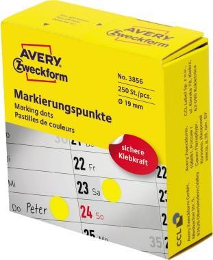 AVERY Zweckform Markierungspunkte, 19 mm, gelb, Spender sichere Klebkraft, in praktischer Spenderbox - 1 Stück (3856)