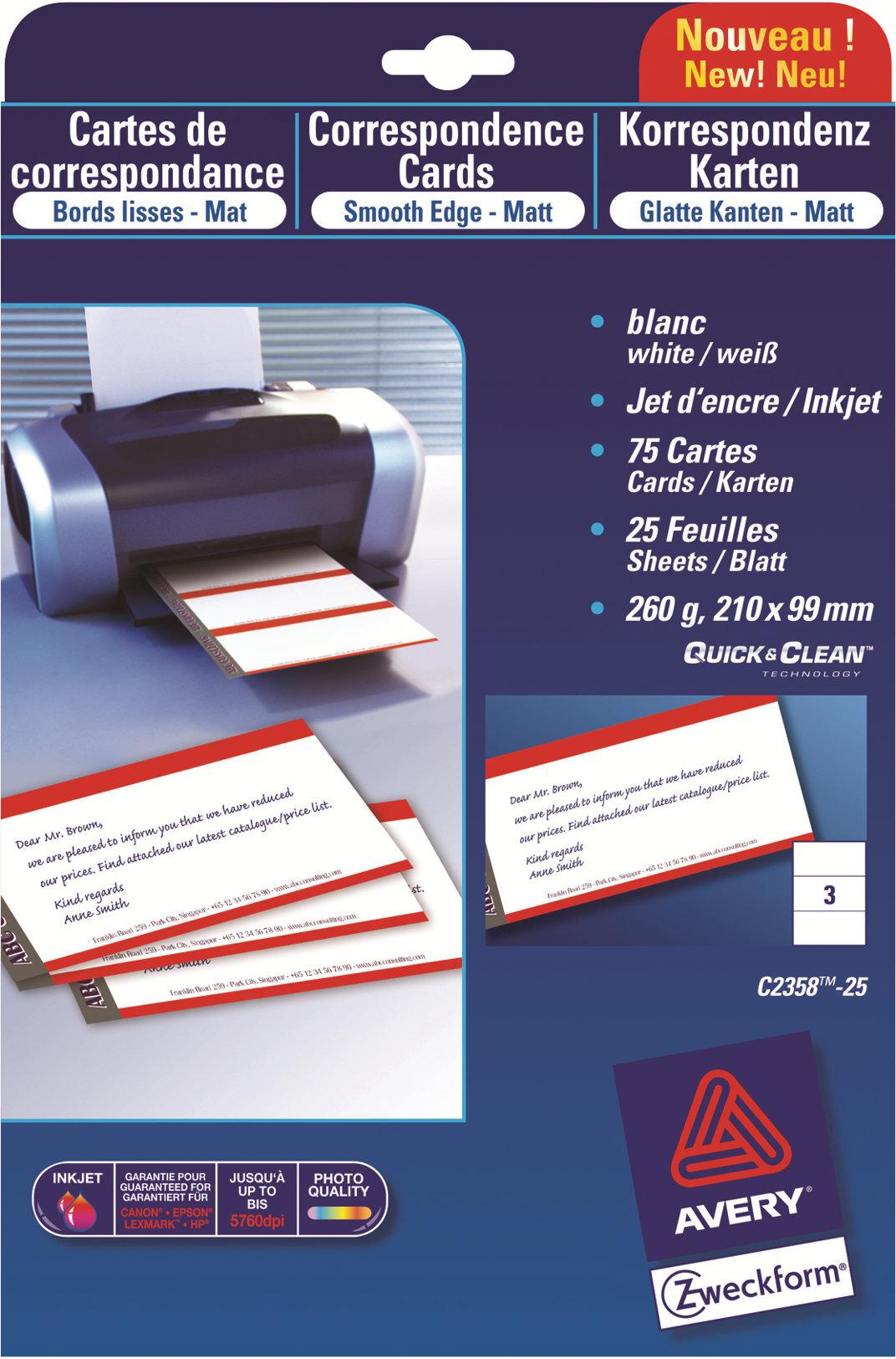Avery Quick&Clean - Weiß - 99 x 210 mm - 220 g/m² - 75 Karte(n) (25 Bogen x 3) Visitenkarten