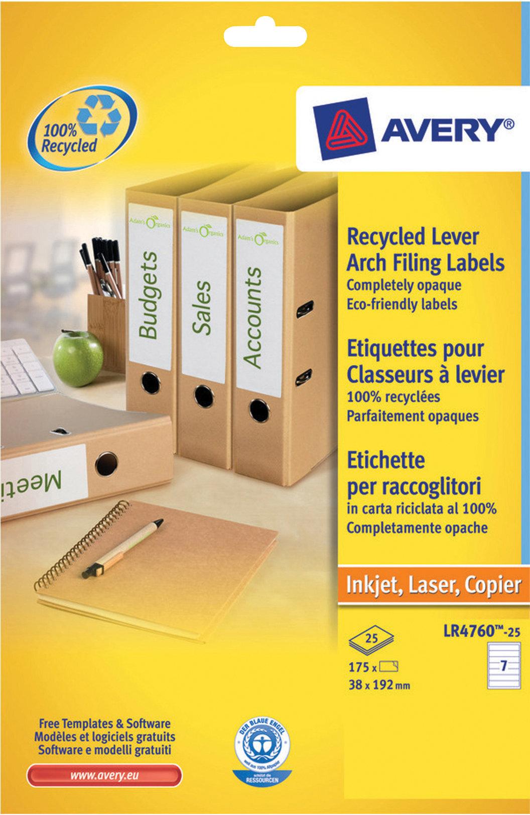 Avery Zweckform LR4760 - Weiß - 38 x 192 mm 175 Etikett(en) (25 Bogen x 7) Aktenetiketten