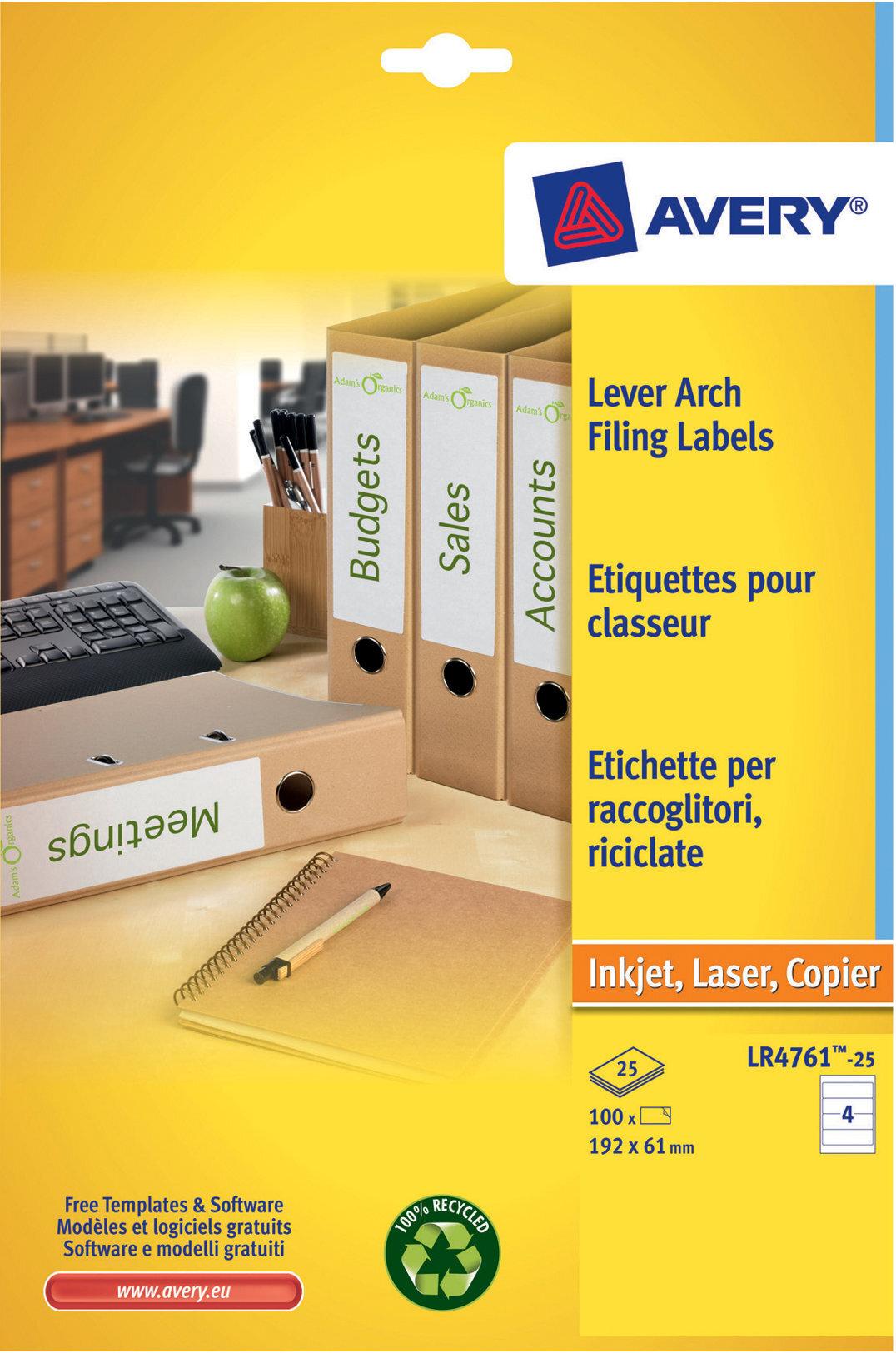 Avery LR4761 - Weiß - 61 x 192 mm 100 Etikett(en) (25 Bogen x 4) Aktenetiketten