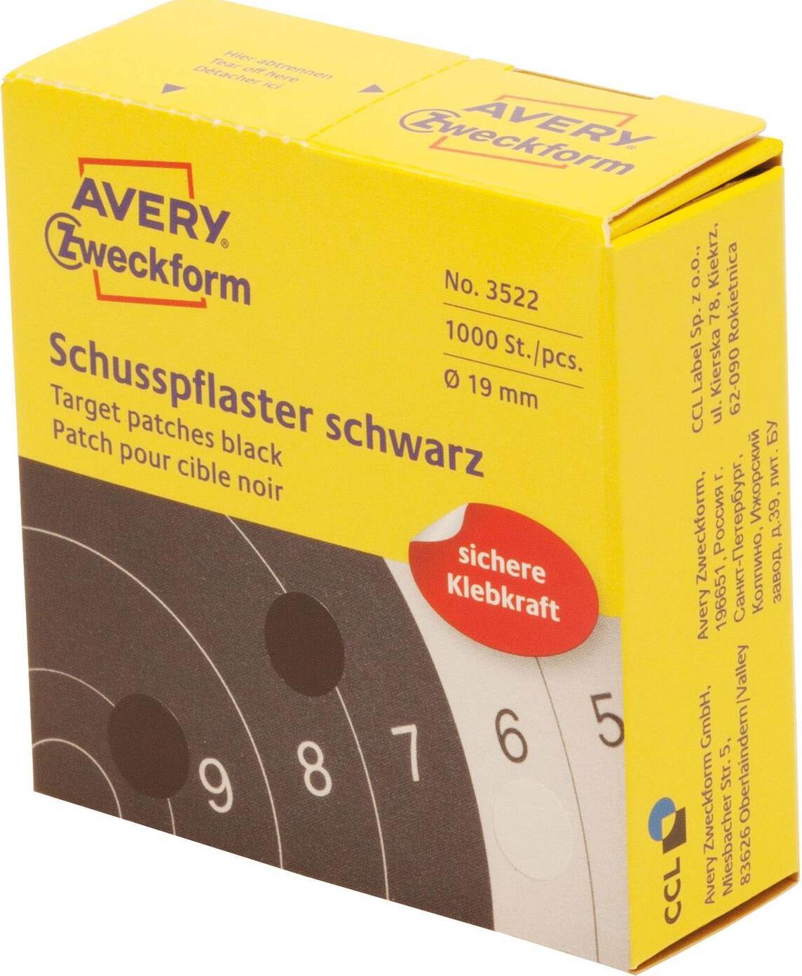 AVERY Zweckform Schußpflaster, schwarz, Durchmesser: 19 mm Inhalt: 1.000 Stück (3522)