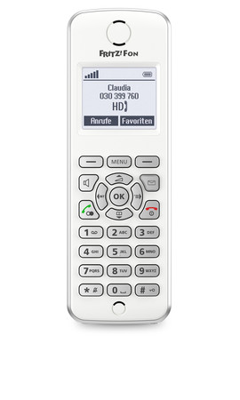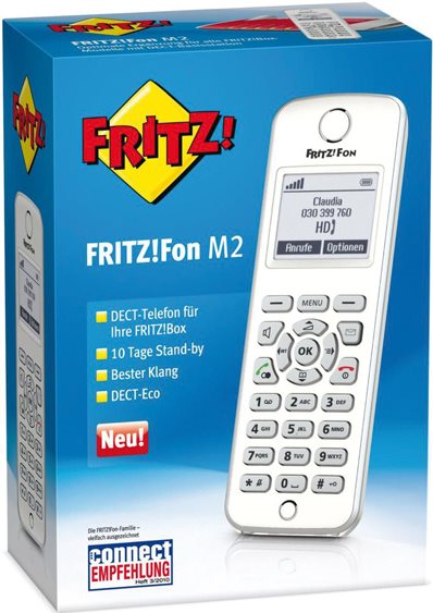Das ergonomische Schnurlostelefon FRITZ!Fon M2 ist speziell für die FRITZ!Box mit DECT-Basisstation konzipiert. Es besticht durch sein edles Design, die erstklassige Akustik und das Freisprechen in HD-Klangqualität. Zudem überzeugt es mit seinen zahlreichen Internet- und Mehrwertdiensten wie der Bearbeitung von E-Mails, dem Empfang von Internetradio sowie dem Abonnieren von News-Feeds und Podcasts.