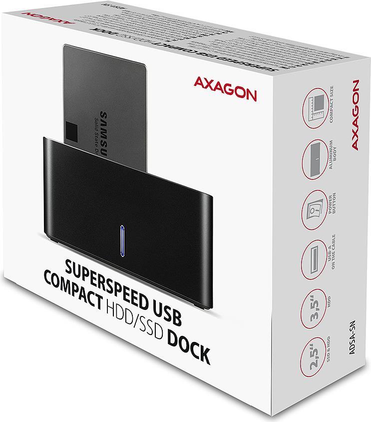 Über die Superspeed Dockingstation AXAGON ADSA-SN COMPACT HDD/SSD DOCK kann schnell und einfach eine beliebige SATA-Festplatte an den Computer angeschlossen werden.