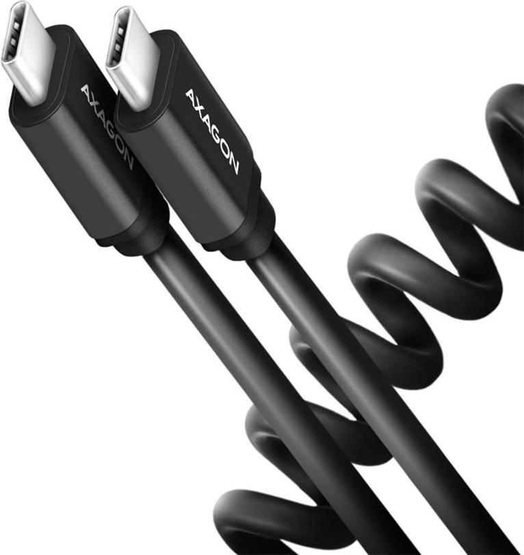 • AXAGON BUCM-AM20TB Spiralkabel, USB-C zu USB-C, 1 m, USB 2.0, 2.4 A, ALU, PVC - Schwarz (BUCM-CM20TB)