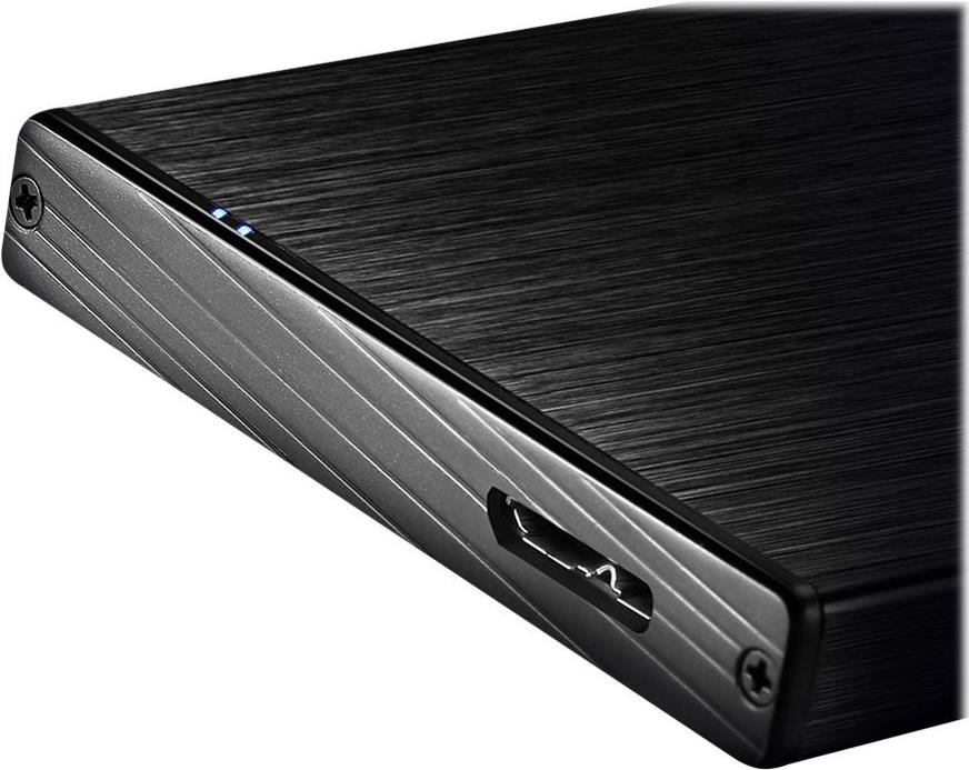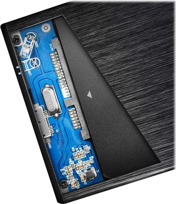 Kompakte externe Box aus Aluminium AXAGON EE25-XA6 ALINEbox mit USB 3.0 und SATA 6G Schnittstelle für einfachen Anschluss von SSD oder 2.5" SATA-Festplatte.