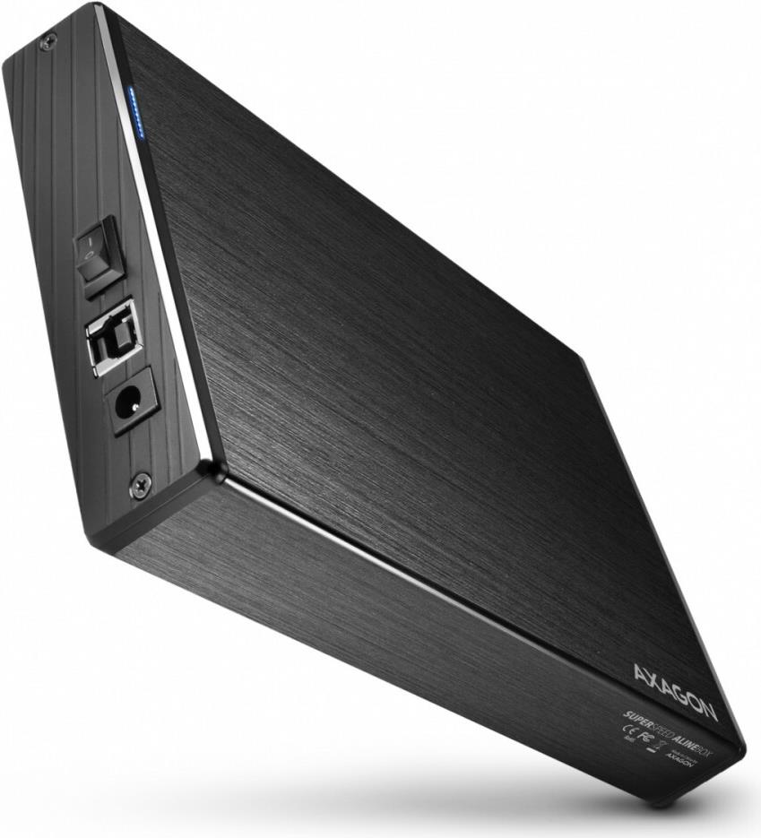 Kompakte externe Box aus Aluminium AXAGON EE35-XA3 ALINEbox mit USB 3.0 Hochgeschwindigkeitsschnittstelle für 3.5" SATA-Festplatten.