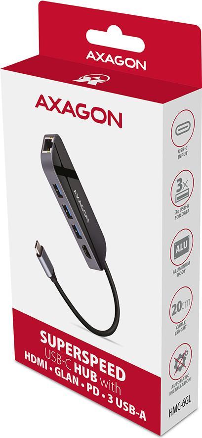 Axagon HMC-6GL Schnittstellen-Hub USB 3.2 Gen 1 (3.1 Gen 1) Type-C 5000 Mbit/s Schwarz - Grau (HMC-6GL)