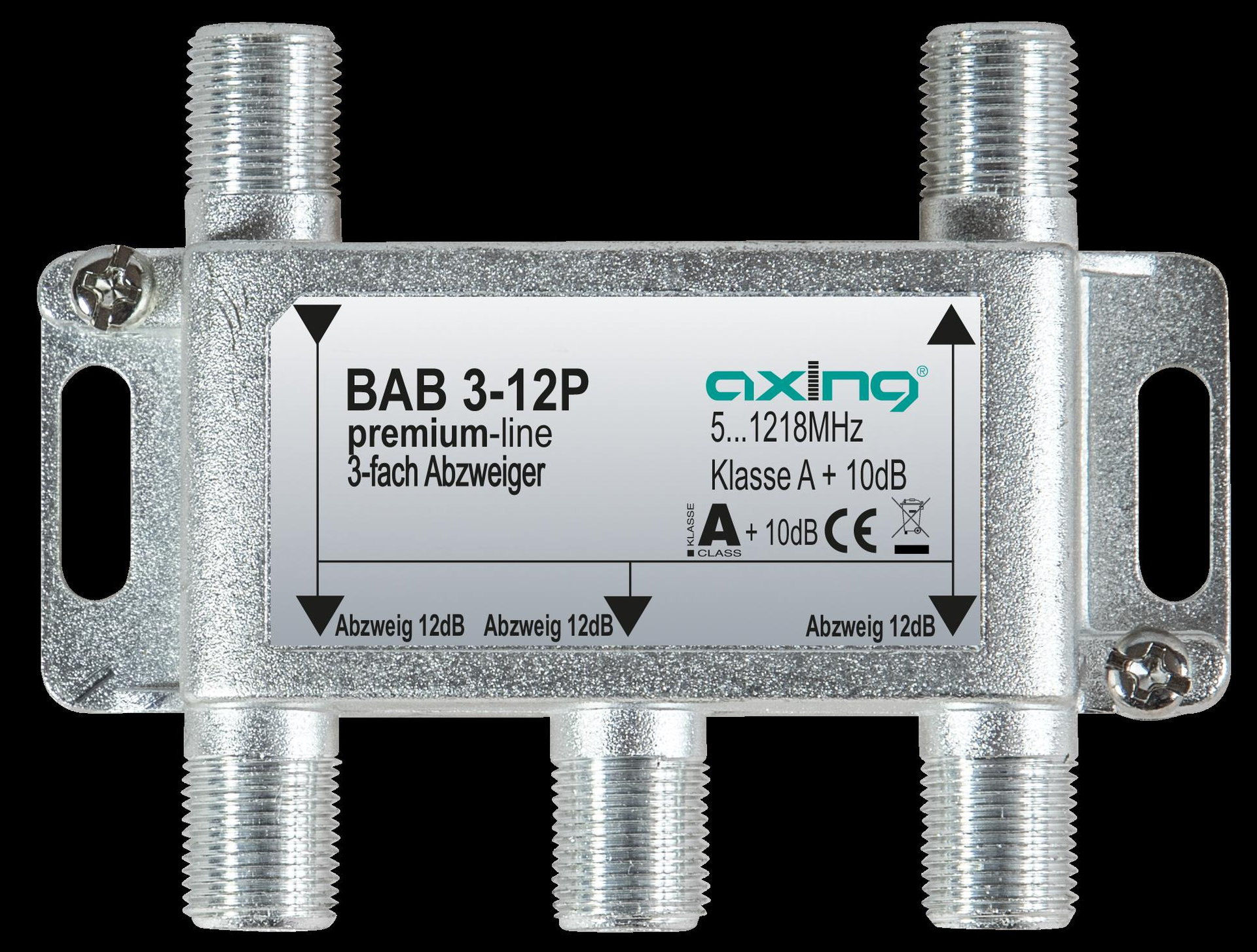 - Schirmungsmaß Klasse A +10 dB, gemäß EN 50083-2