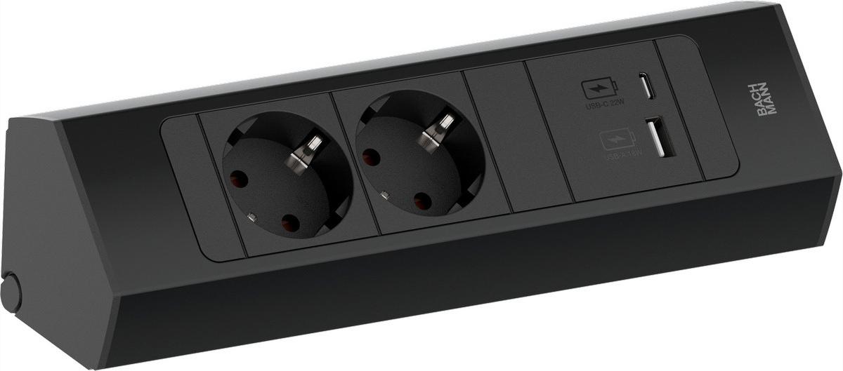 Die Bachmann CASIA 2 ist eine vielseitige Steckdosenleiste, die auf Effizienz und Komfort ausgelegt ist. Mit einem 2 m langen Netzkabel ermöglicht sie eine ausreichende Reichweite zu verschiedenen Bereichen und bietet gleichzeitig eine robuste Stromversorgung. Diese Steckdosenleiste verfügt über mehrere Ausgänge, darunter einen 4-poligen USB-Typ-A-Anschluss und einen 24-poligen USB-C-Anschluss, sodass sie für eine Vielzahl von Geräten geeignet ist. Dank ihrer Wand- und Oberflächenmontage ist sie flexibel in der Organisation und zugänglich, sodass Benutzer das Beste aus ihrer Einrichtung herausholen können.